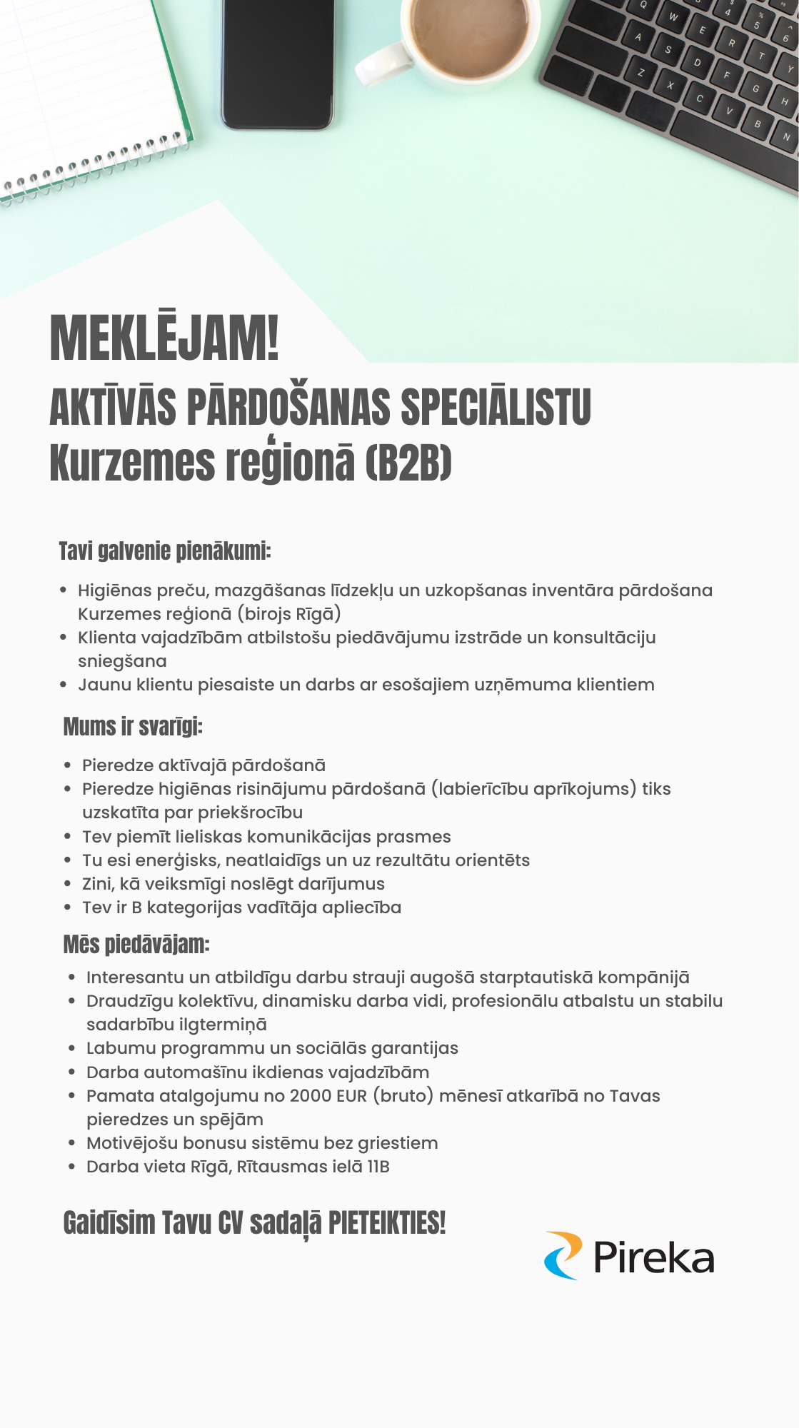 Additional information: pamata atalgojums no 2000 EUR (bruto) mēnesī atkarībā no Tavas pieredzes un spējām.