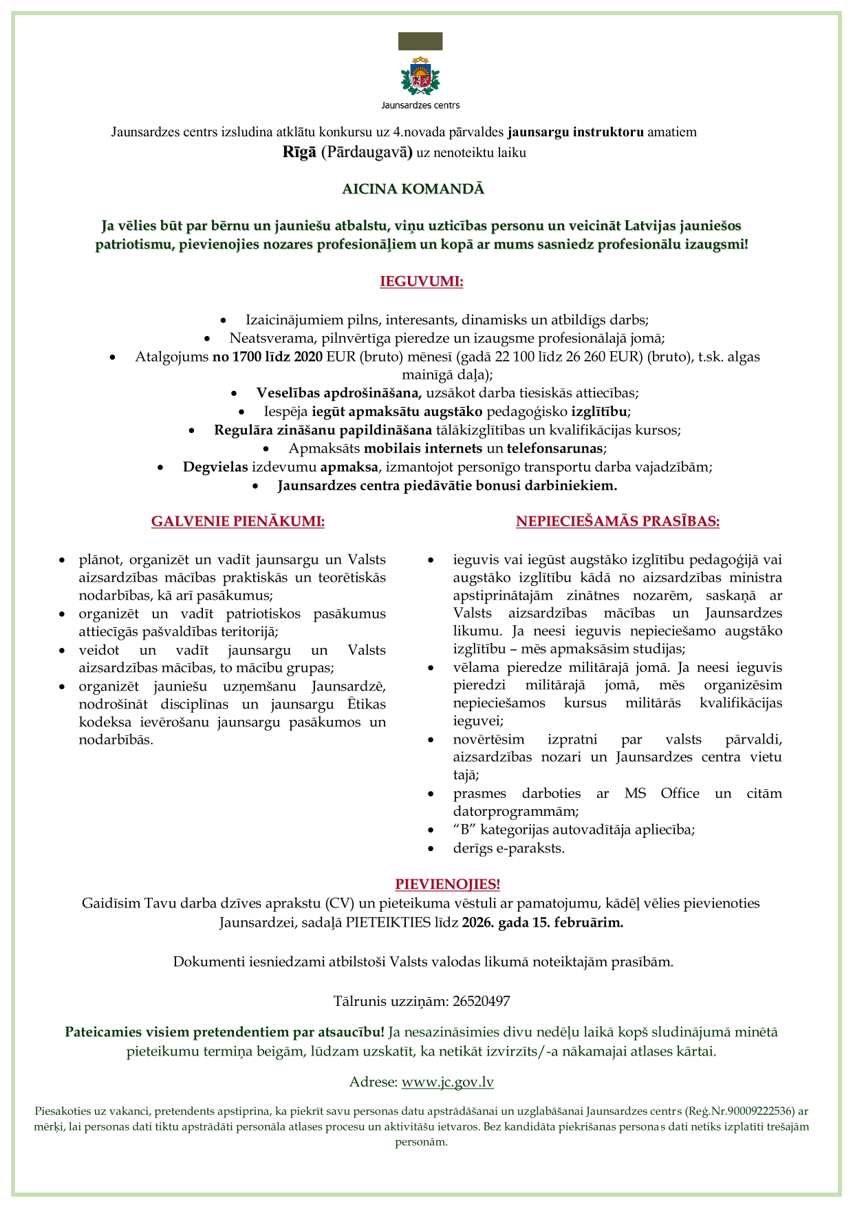 Additional information: gadā 22 100 līdz 26 260 EUR bruto