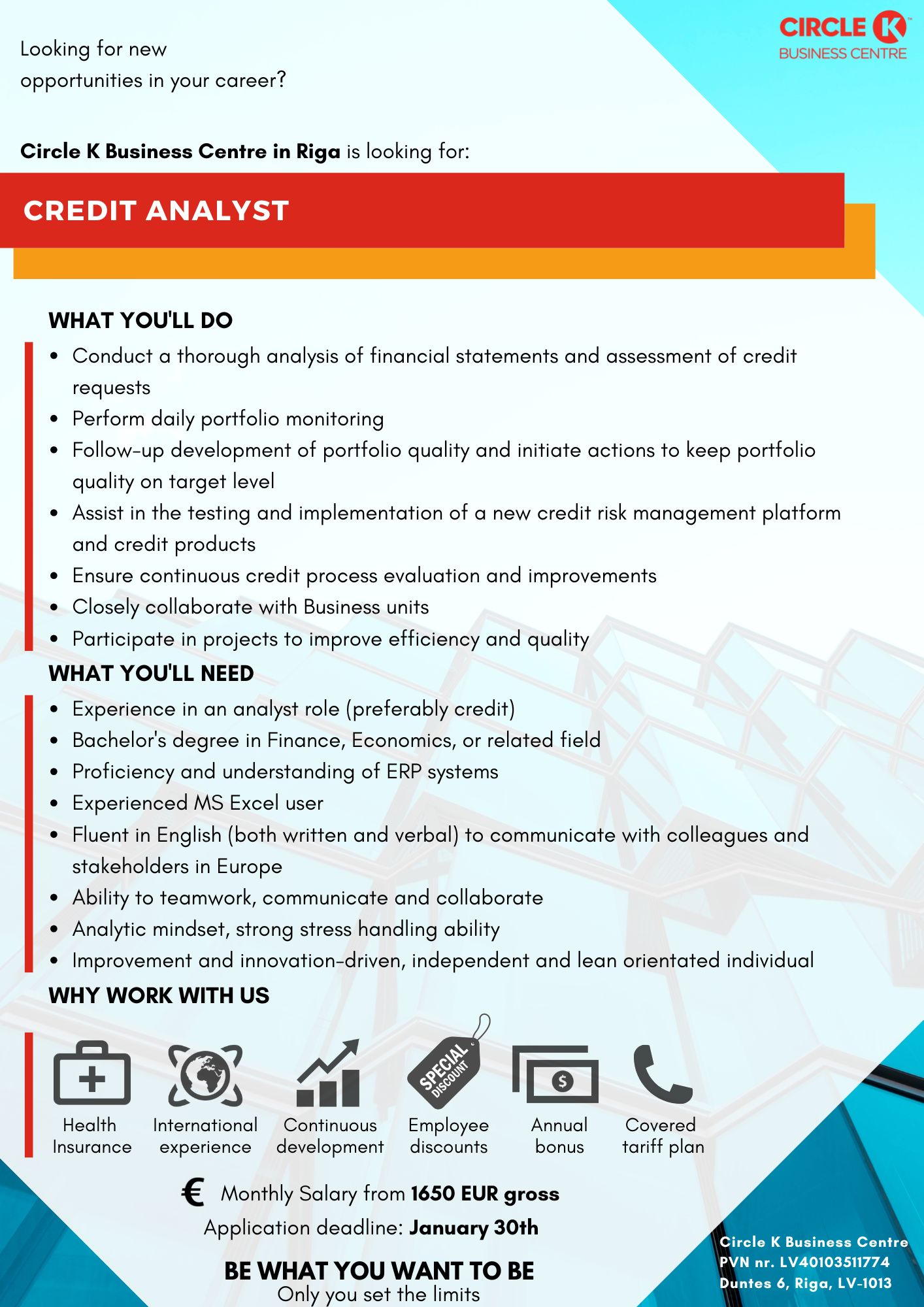 Circle K Business Centre in Riga is one of the biggest support offices in our global Circle K family. Were more than 750 professionals who are providing services in areas of Finance, Logistics, IT, Customer Service & HR. Join our international team!
