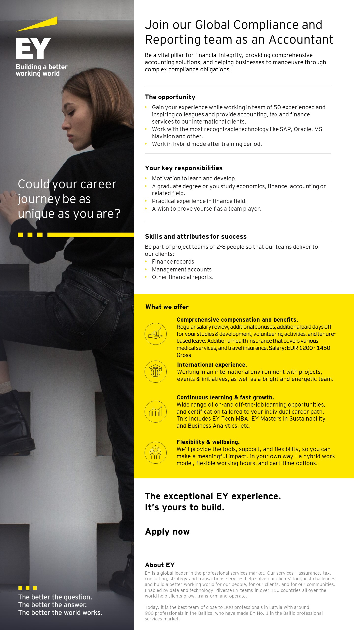 EY is a global leader in assurance, tax, strategy and transaction, consulting services. The insights and quality services we deliver help build trust and confidence in the capital markets and in economies the world over. We develop outstanding leaders who team to deliver on our promises to all of our stakeholders. In so doing, we play a critical role in building a better working world for our people, for our clients and for our communities.