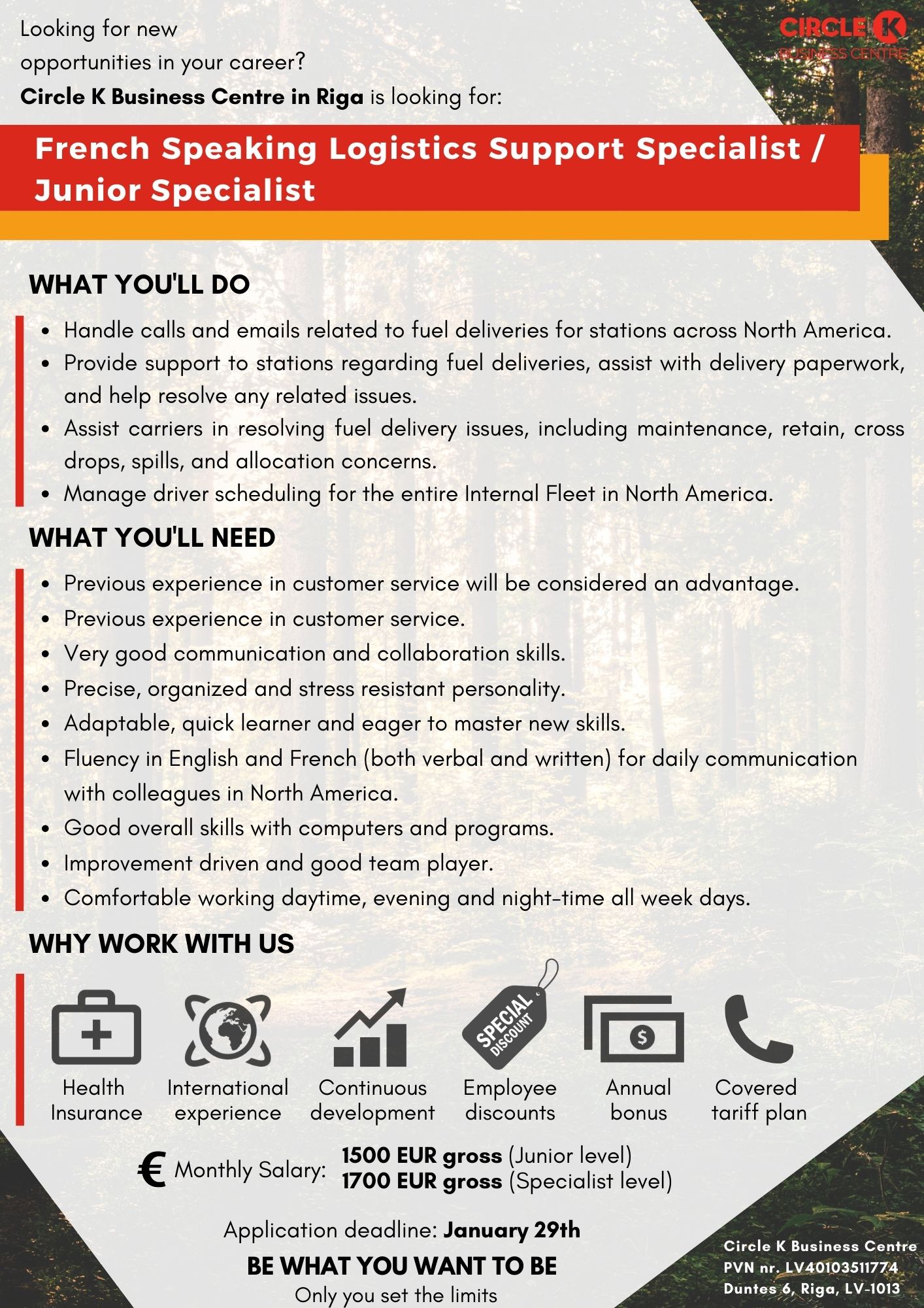 Circle K Business Centre in Riga is one of the biggest support offices in our global Circle K family. Were more than 750 professionals who are providing services in areas of Finance, Logistics, IT, Customer Service & HR. Join our international team!