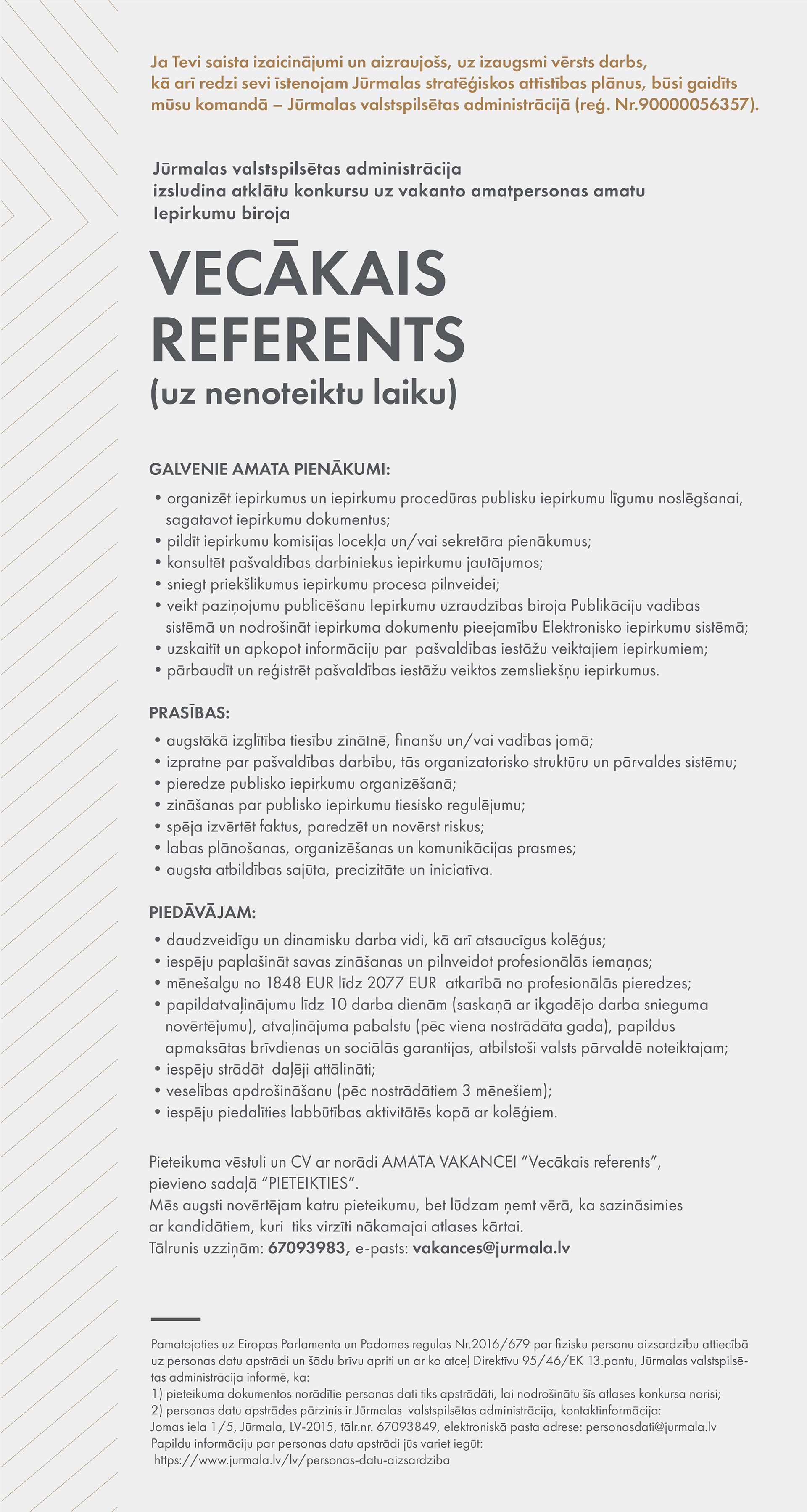 Additional information: No 1899 eiro mēnesī pirms nodokļu maksas