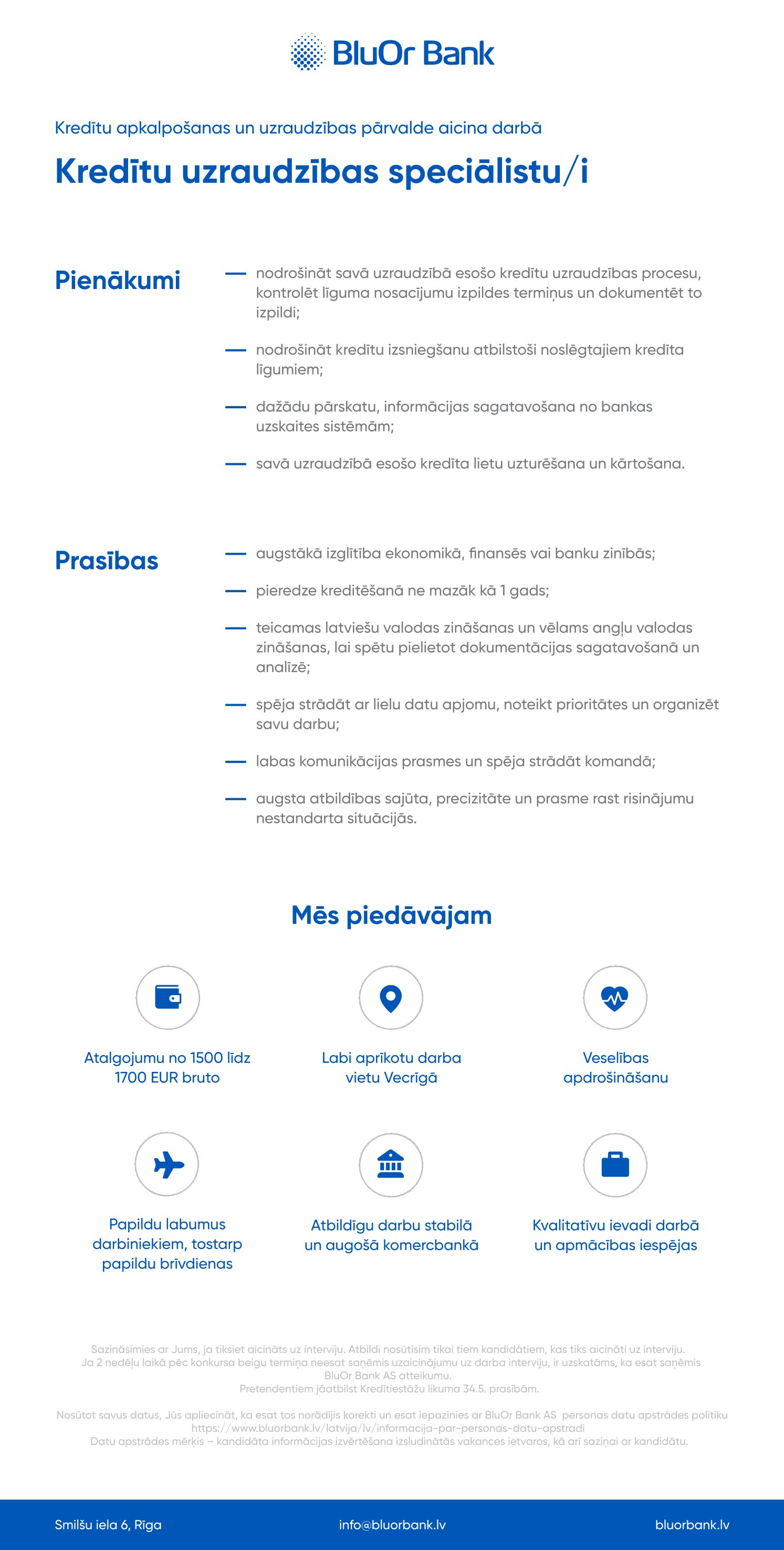 BluOr Банк основан в 2001 году и является современным технологическим банком, предоставляющим финансовые, кредитные и инвестиционные услуги частным клиентам и корпоративным предприятиям в Латвии, странах Балтии и Европы.