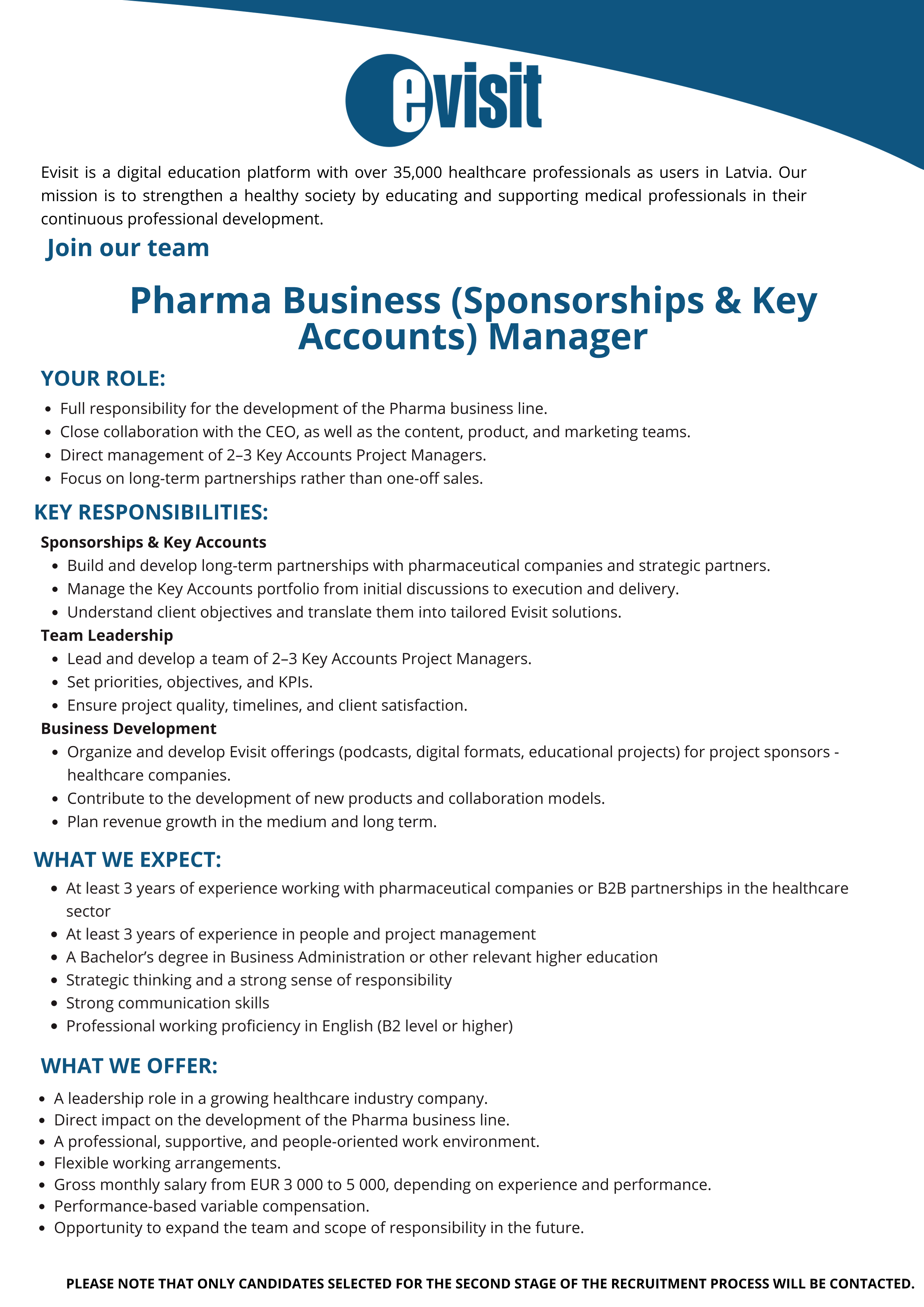 Additional information: Gross monthly salary from 3 000 to 5 000, depending on experience and performance