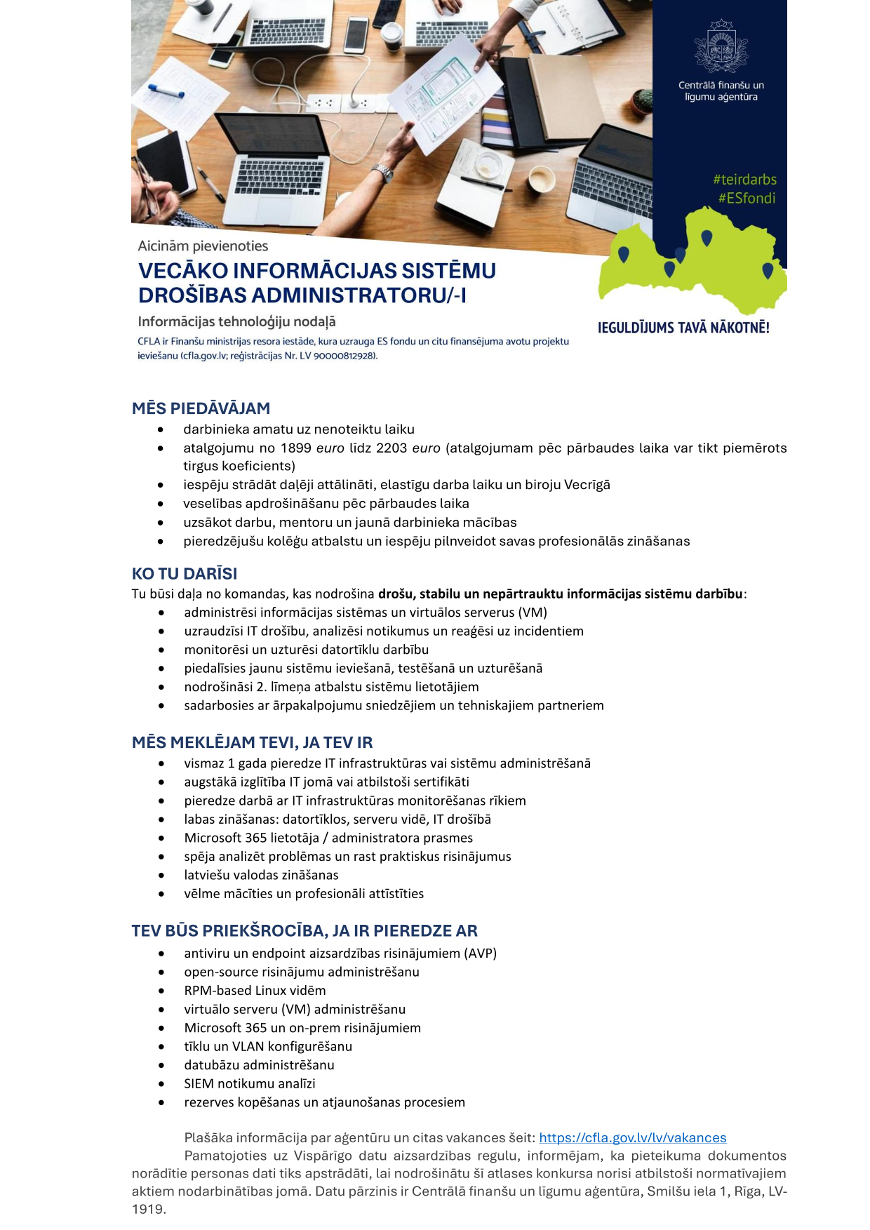 Additional information: bruto atalgojumu no 1899 euro līdz 2203 euro