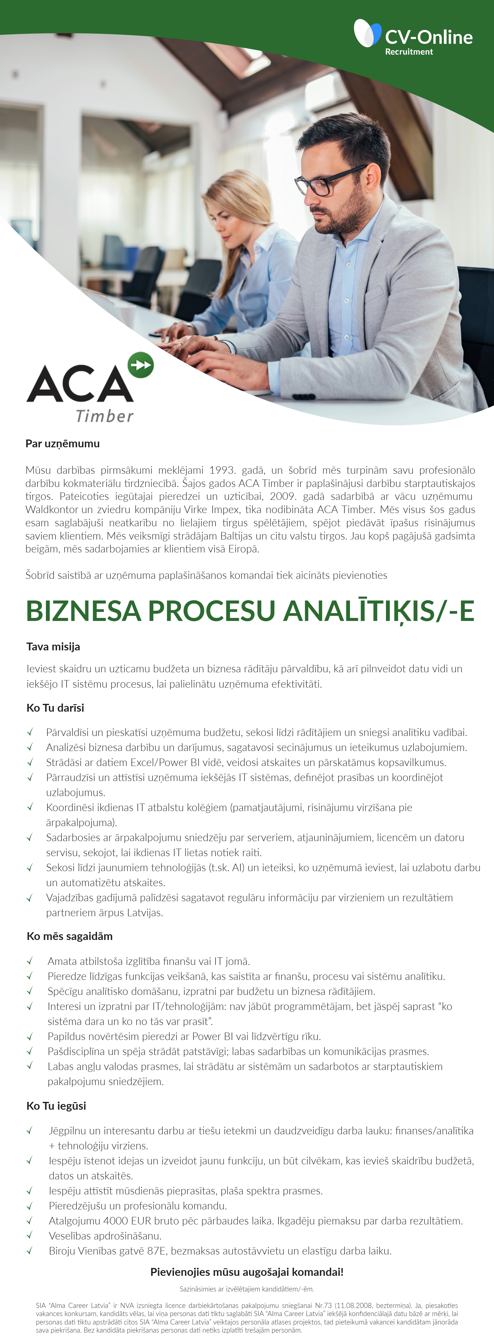 Mūsu darbības pirmsākumi meklējami 1993. gadā, un šobrīd mēs turpinām savu profesionālo darbību kokmateriālu tirdzniecībā. Šajos gados ACA Timber ir paplašinājusi darbību starptautiskajos tirgos. Pateicoties iegūtajai pieredzei un uzticībai, 2009. gadā sadarbībā ar vācu uzņēmumu Waldkontor un zviedru kompāniju Virke Impex, tika nodibināta ACA Timber. Mēs visus šos gadus esam saglabājuši neatkarību no lielajiem tirgus spēlētājiem, spējot piedāvāt īpašus risinājumus saviem klientiem. Mēs veiksmīgi strādājam Baltijas un citu valstu tirgos. Jau kopš pagājušā gadsimta beigām, mēs sadarbojamies ar klientiem visā Eiropā.