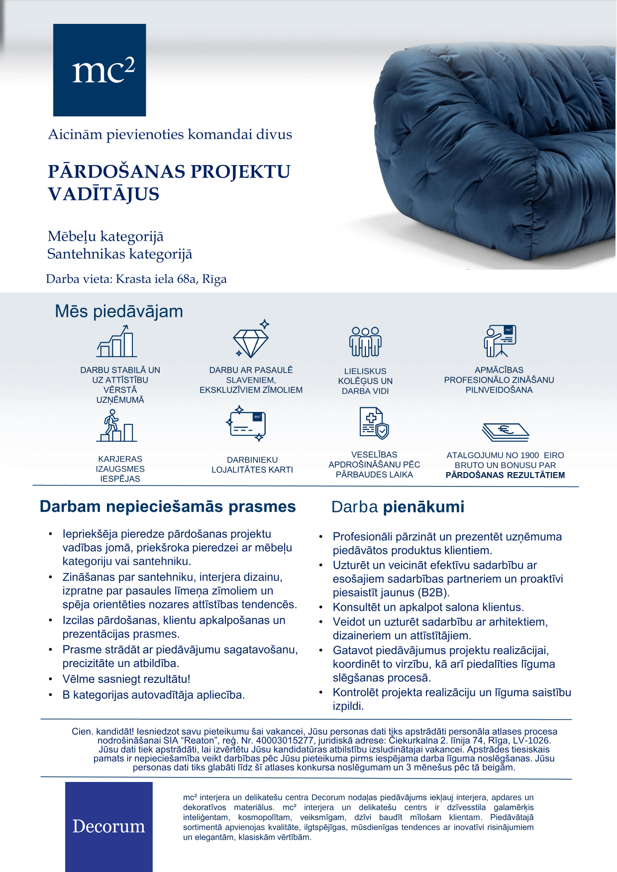 Additional information: Atalgojumu no 1900 un bonusu sistēmu par pārdošanas rezultātiem