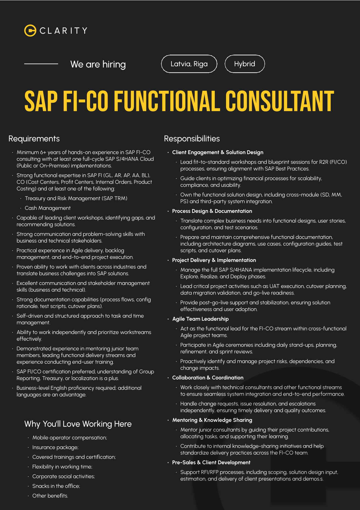 At Clarity Labs, our purpose is to help businesses around the world become more successful by better planning, implementing and running their SAP Customer Experience projects. As an SAP partner, we’re committed to leveraging the power of SAP C/4 Hana to make every client’s customer transformation journey a long-lasting success.
