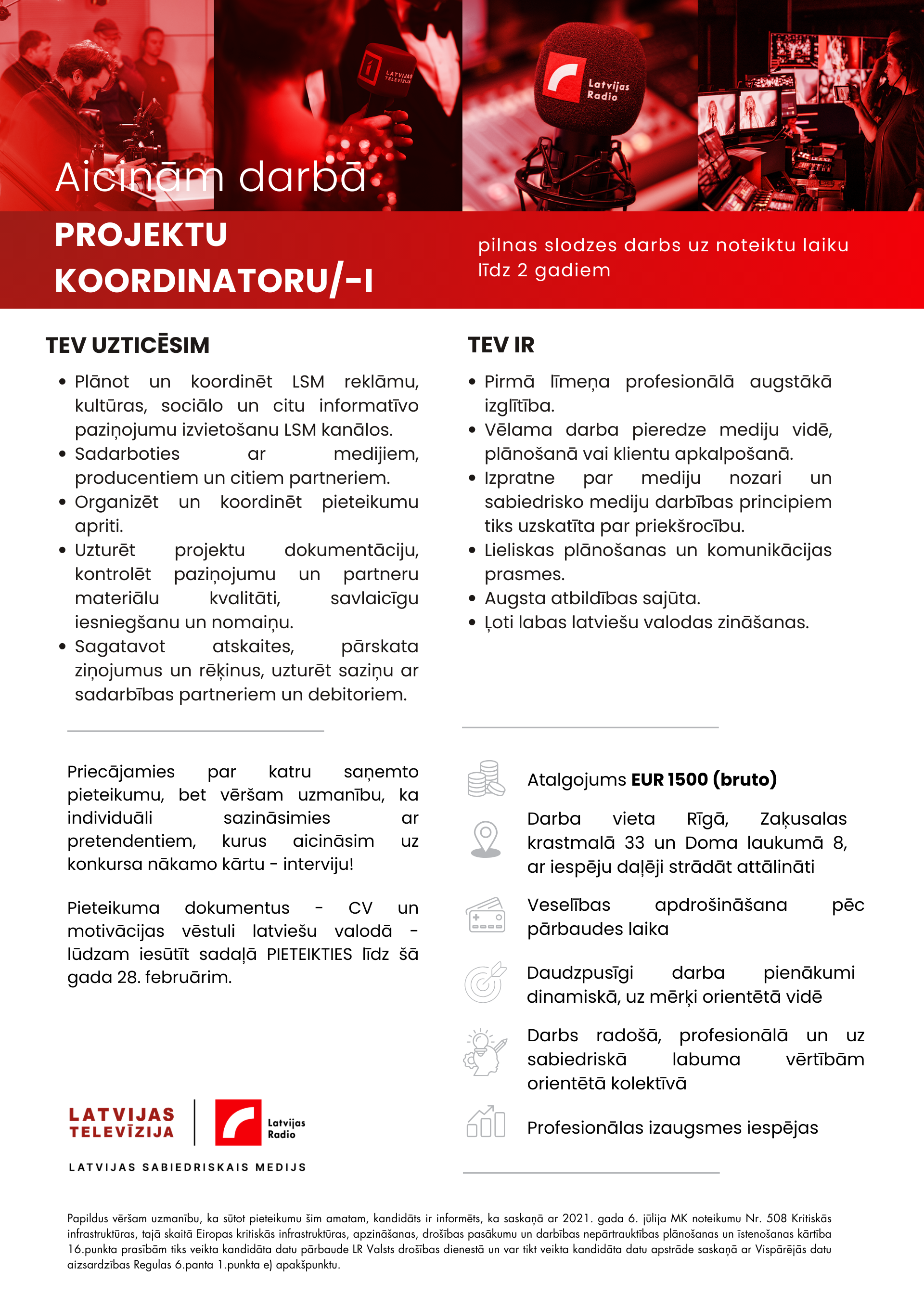 VSIA Latvijas Sabiedriskais medijs darbu sāka 2025. gada 2. janvārī, apvienojoties Latvijas Televīzijai un Latvijas Radio. Latvijas Sabiedriskā medija mērķis ir stiprināt Latvijas demokrātisko iekārtu, vārda brīvību un Latvijas iedzīvotāju sajūtu, ka viņi ir piederīgi Latvijai, kopt latviešu valodu un nacionālo kultūru. Mūsu komanda veido sabiedrības interesēm un vajadzībām atbilstošu un daudzveidīgu mediju saturu, informējot, analizējot, izglītojot un izklaidējot.