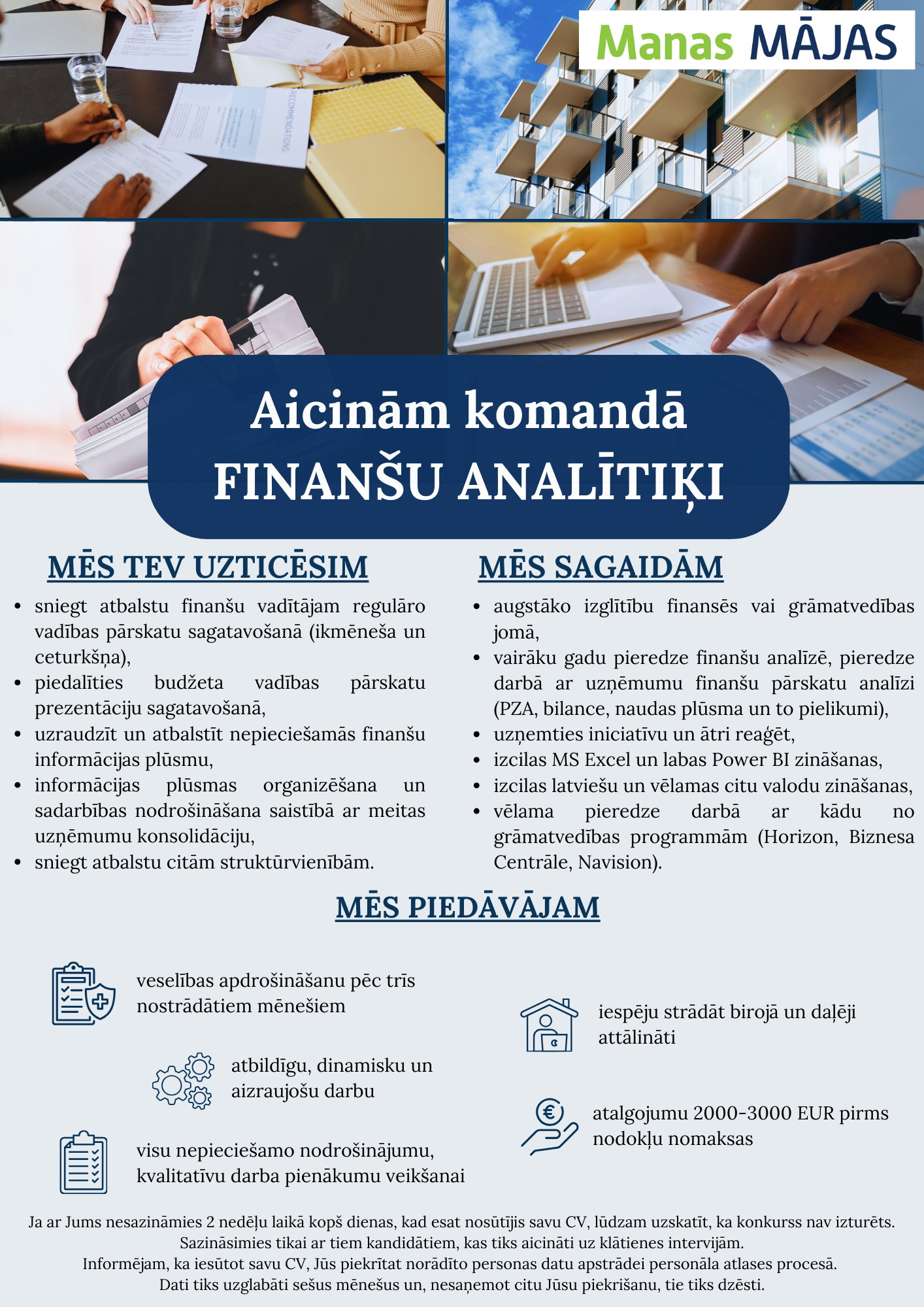 Manas MĀJAS nodrošina īpašuma pārvaldību. Kā strauji augoša uzņēmumu grupa, mēs palīdzam saviem klientiem radīt harmonisku dzīves un darba vidi, sniedzot pakalpojumus, kas rada pievienoto vērtību. Mūsu pakalpojumi ietver ēku apsaimniekošanu, inženiertehniskos risinājumus un uzkopšanu.Mēs rūpējamies par dzīves un darba vidi. Mēs strādājam, lai padarītu mūsu klientu vidi ērtāku, sakoptāku un drošāku. Izmantojot pareizos rīkus, pieredzi un vairāk nekā 150 cilvēku lielu palīdzību, mēs esam gatavi turpināt izaugsmi.