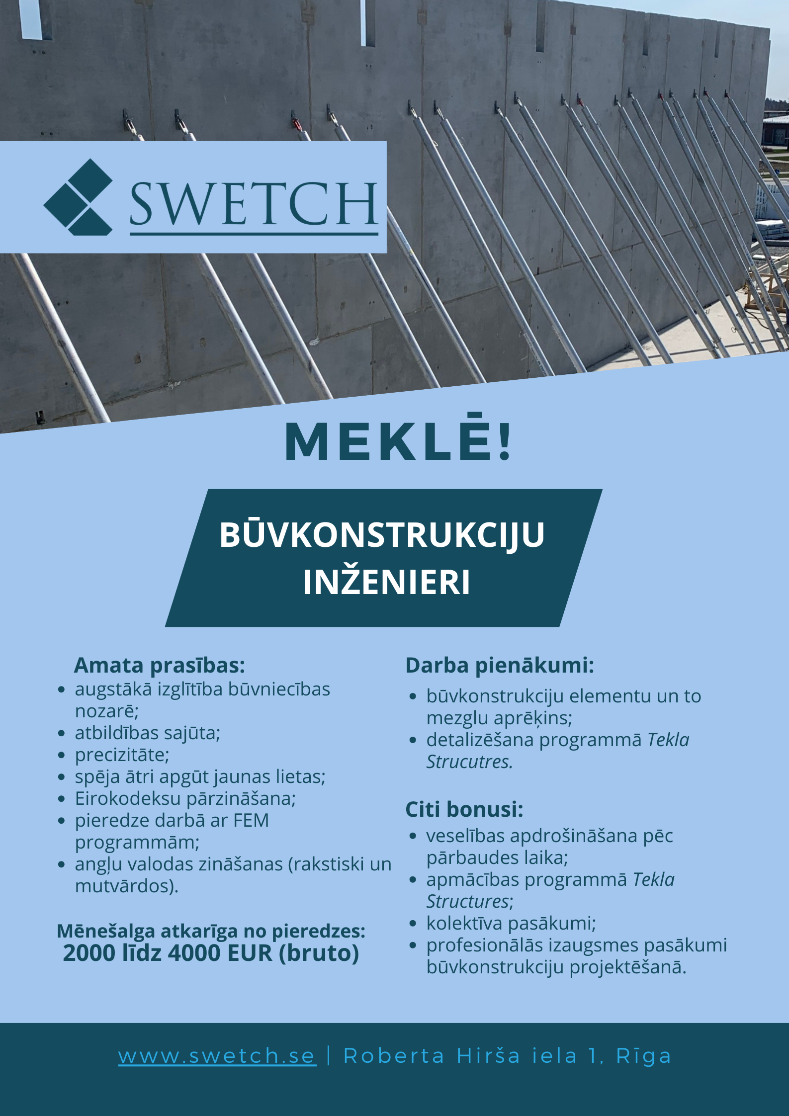 Būvkonstrukciju projektēšanas uzņēmums "SWETCH" dibināts 2016. gadā Latvijā. Uzņēmuma kodolu veido 50 būvinženieri ar plašu starptautisko projektēšanas pieredzi un spēcīgām zināšanām, kas aizgūtas Latvijas, Dānijas un Polijas tehniskajās universitātēs.