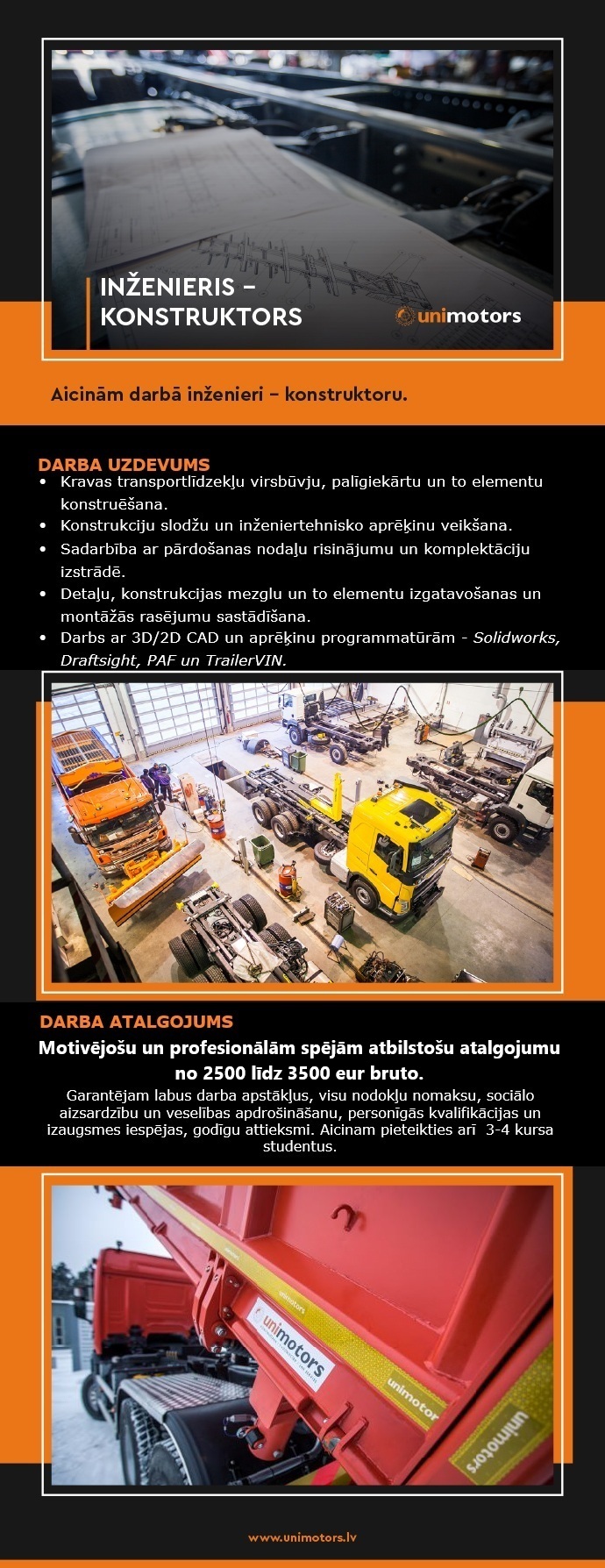 SIA UNIMOTORS LATVIA ir viens no pieredzes bagātākajiem speciālās tehnikas tirdzniecības, servisa un virsbūvju ražošanas uzņēmumiem Latvijā.25 gadu laikā tas ir kļuvis par nozīmīgu sadarbības partneri tādiem pasaulē atzītiem speciālās tehnikas zīmoliem kā MERCEDES-BENZ SPECIAL TRUCKS, PALFINGER, AEBISCHMIDT, PRINOTH, MULTICAR, NTM, ROSENBAUER.Uzņēmums veic specializēto transportlīdzekļu komplektēšanu un aprīkošanu, piedāvājot klientu vajadzībām atbilstošus individuālus tehnoloģiskos risinājumus. Pārstāvēto ražotāju iekārtu un aprīkojuma montāžu UNIMOTORS veic savā tehniskajā centrā Dreiliņos, atbilstoši uzņēmuma konstruktoru izstrādātajiem projektiem. Uzņēmums lepojas ar izveidoto speciālistu komandu un lielo pieredzi, kas ļauj realizēt vissarežģītākās pakāpes specializētās tehnikas pārbūves un komplektēšanas darbus.UNIMOTORS ir Latvijas kapitāla uzņēmums, kas šo gadu laikā no 3 darbiniekiem ir izaudzis līdz 30 profesionāļu komandai.