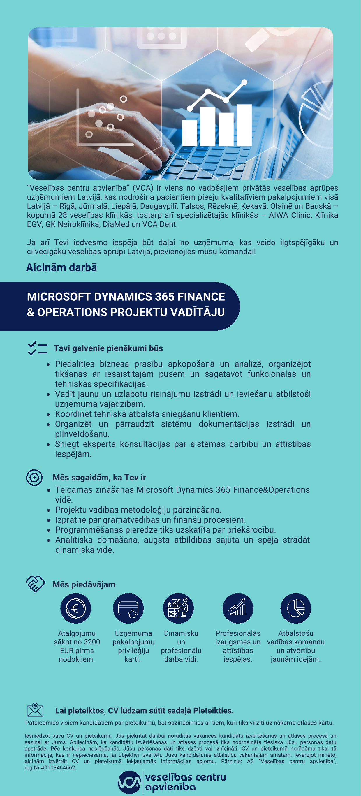 AS Veselības centru apvienība ir viens no pieejamākajiem veselības aprūpes tīkliem Latvijā, apvienojot 26 klīnikas gan primārās aprūpes iestādes, gan specializētās klīnikas, tostarp Aiwa Clinic, GK Neiroklīnika, EGV, Diamed un VCA Dent. Šī vienotā struktūra nodrošina pacientiem piekļuvi plašam un kvalitatīvam veselības pakalpojumu klāstam visā valstī. VCA pakalpojumu vērtību vēl vairāk palielina piederība AB City un Repharm grupai, kurā ietilpst arī Mēness aptieka, Centrālā laboratorija, kā arī zāļu un farmaceitisko produktu ražotāji, veidojot savstarpēji atbildīgu un pacientam ērtu veselības aprūpes ekosistēmu.