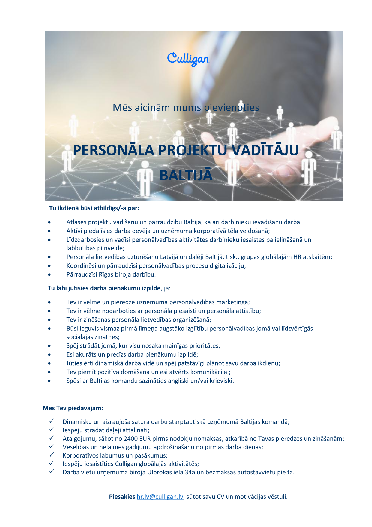 ''Culligan Latvia'' ir viens no vadošajiem dzeramā ūdens risinājumu piegādātājiem Latvijā un ir daļa no globāla uzņēmuma. Uzņēmuma mērķis ir iedvesmot veselīgu dzīvesveidu mājās un darbā, atvieglojot saviem klientiem iespēju iegūt kvalitatīvu ūdeni jebkurā laikā, jebkurā vietā un jebkādā veidā.
