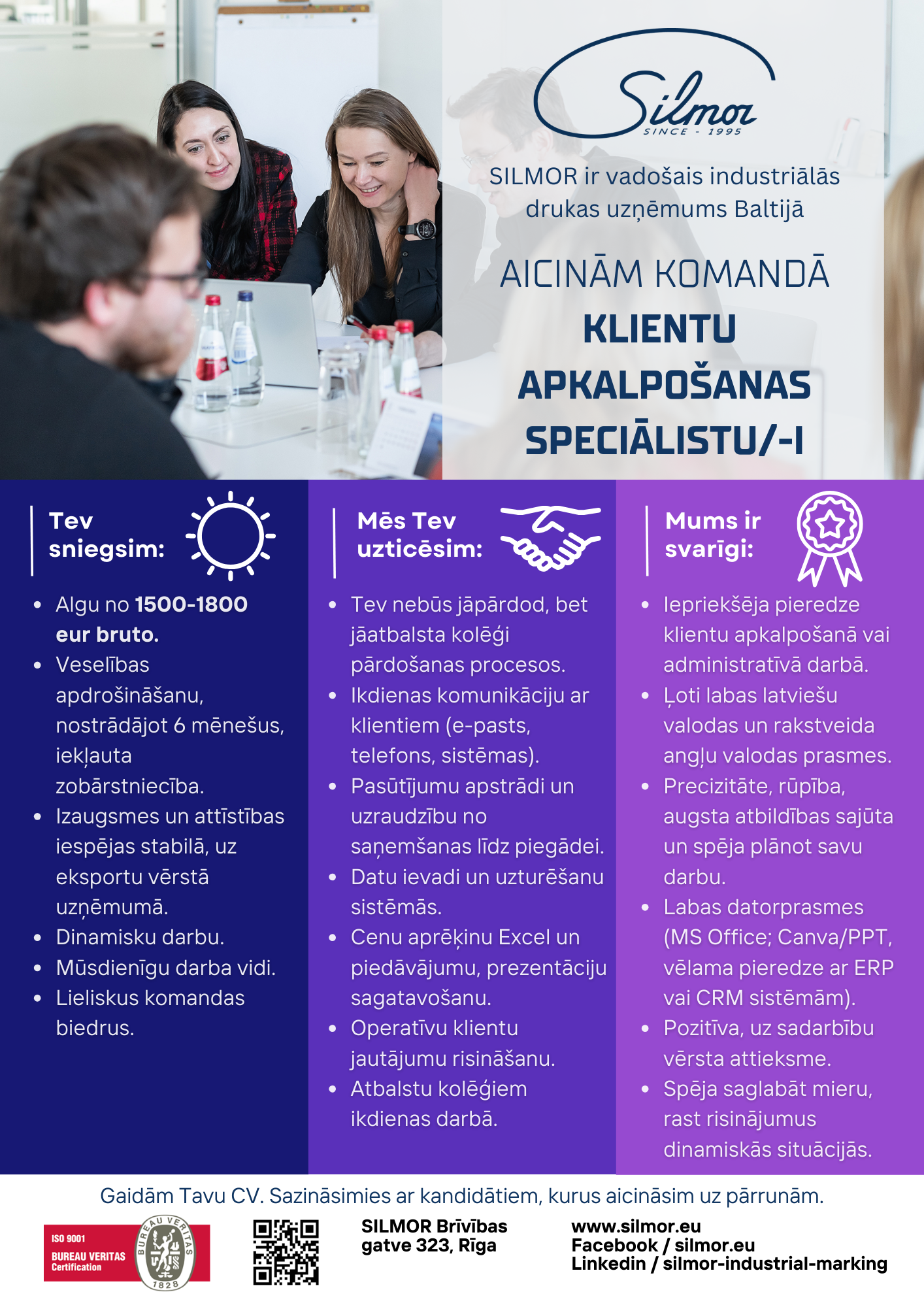 Additional information: Atalgojums no 1500-1800 EUR bruto. Veselības apdrošināšana, nostrādājot 6 mēnešus, iekļauta zobārstniecība.