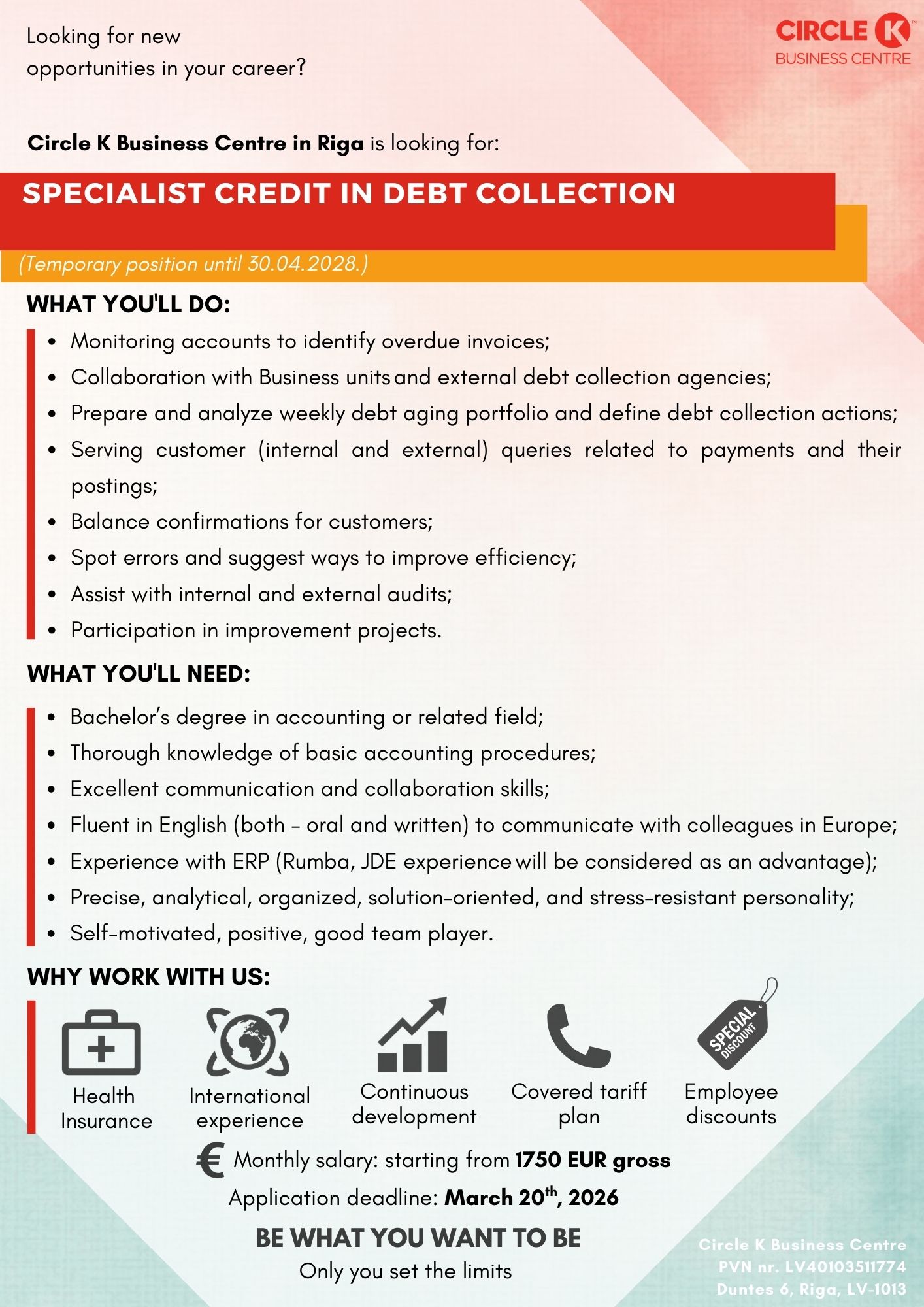 Circle K Business Centre in Riga is one of the biggest support offices in our global Circle K family. Were more than 750 professionals who are providing services in areas of Finance, Logistics, IT, Customer Service & HR. Join our international team!