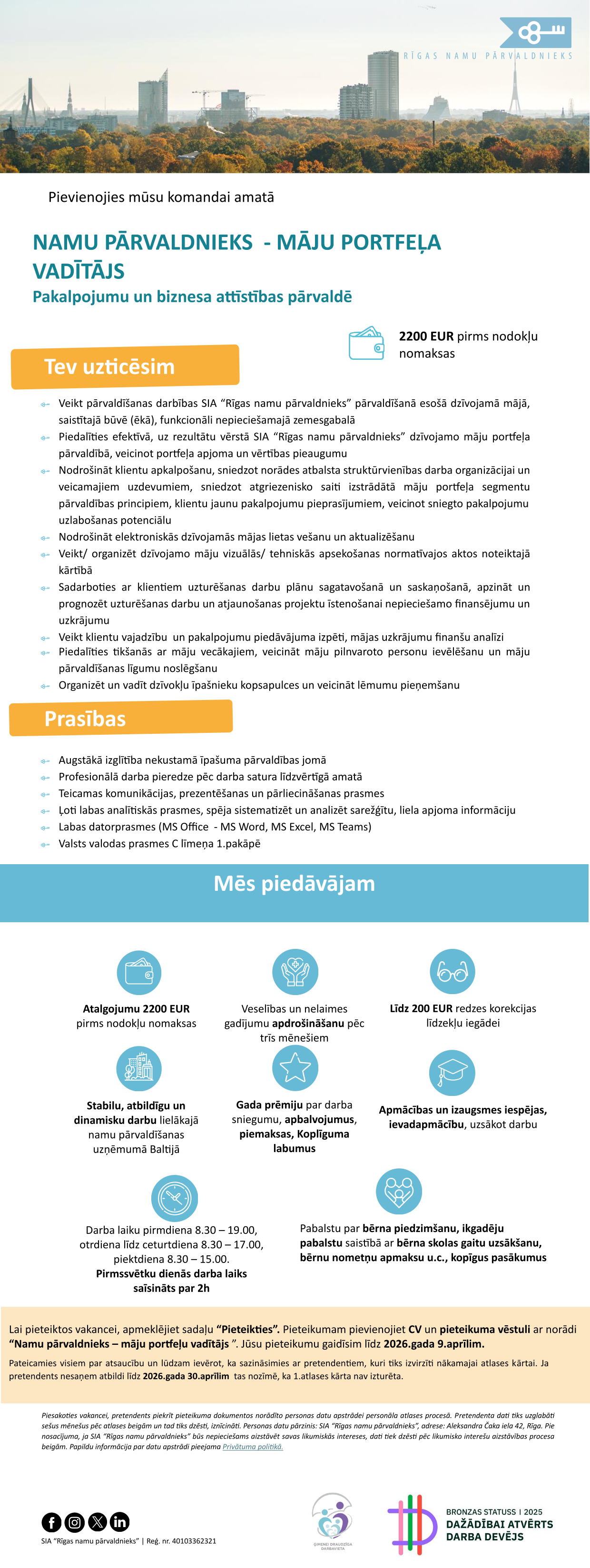 Īpašumu apsaimniekošanas nodaļas vadītājs/-a