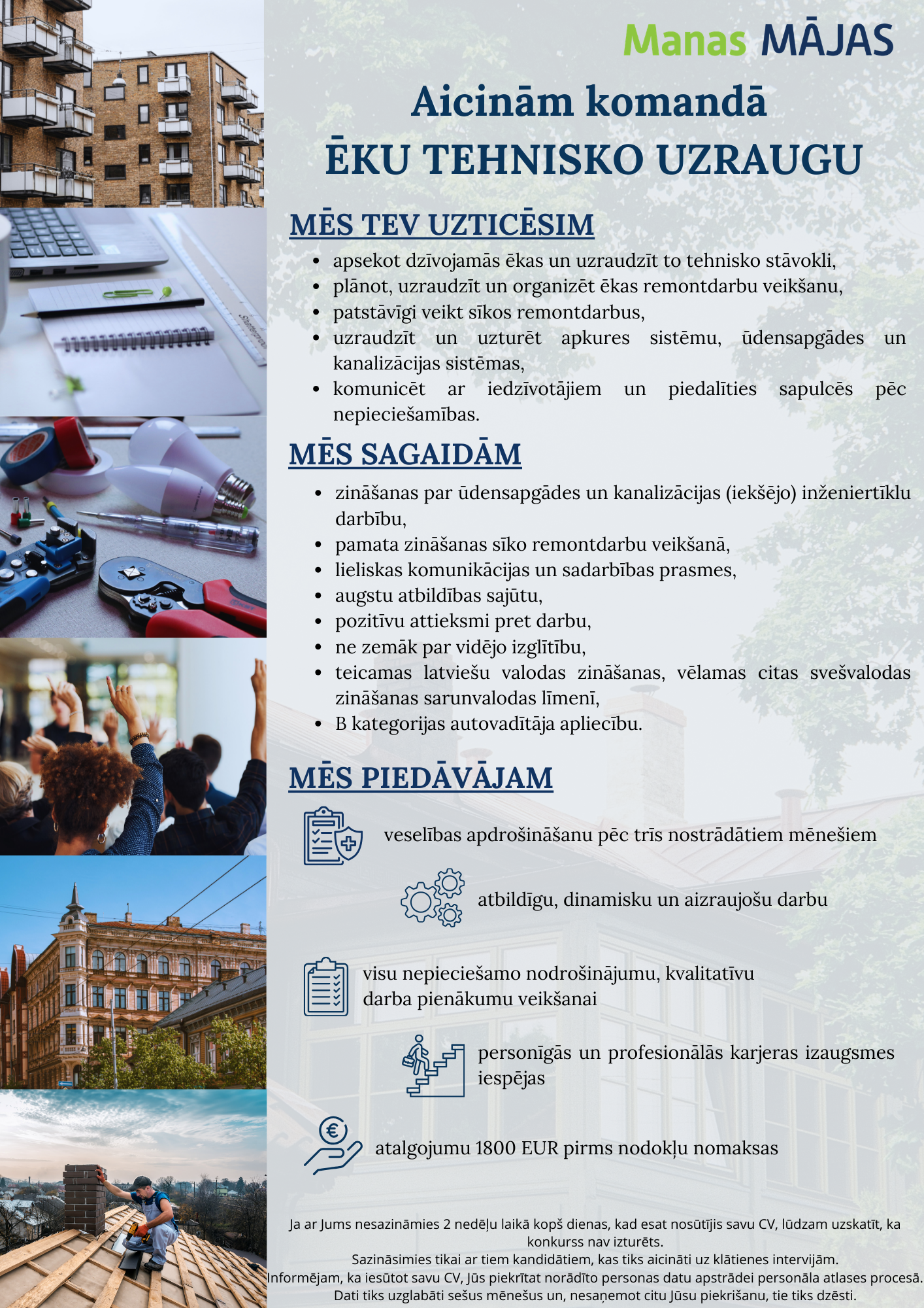 Manas MĀJAS nodrošina īpašuma pārvaldību. Kā strauji augoša uzņēmumu grupa, mēs palīdzam saviem klientiem radīt harmonisku dzīves un darba vidi, sniedzot pakalpojumus, kas rada pievienoto vērtību. Mūsu pakalpojumi ietver ēku apsaimniekošanu, inženiertehniskos risinājumus un uzkopšanu.Mēs rūpējamies par dzīves un darba vidi. Mēs strādājam, lai padarītu mūsu klientu vidi ērtāku, sakoptāku un drošāku. Izmantojot pareizos rīkus, pieredzi un vairāk nekā 150 cilvēku lielu palīdzību, mēs esam gatavi turpināt izaugsmi.
