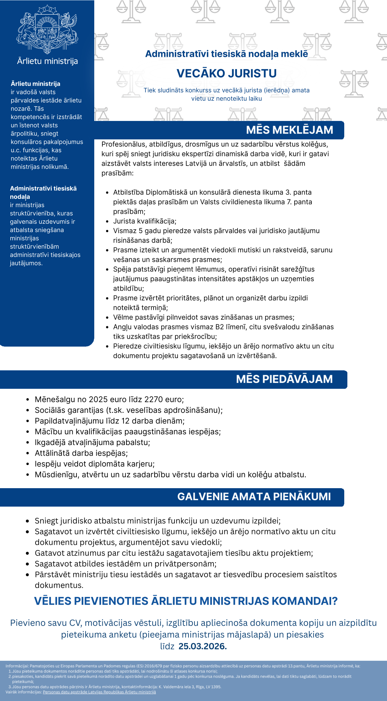 Jurists/-e Piedziņas nodaļā
