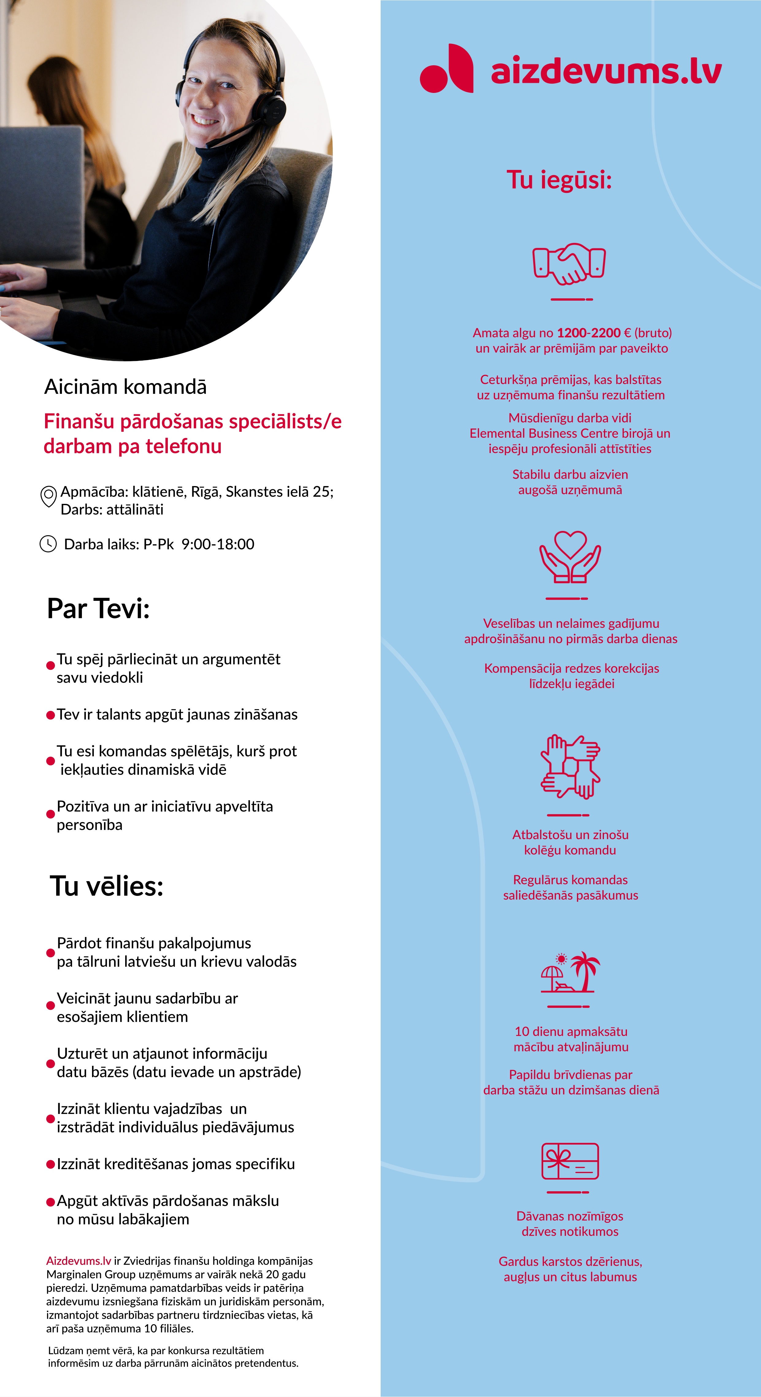 - Pārdot finanšu pakalpojumus pa tālruni latviešu un krievu valodās
