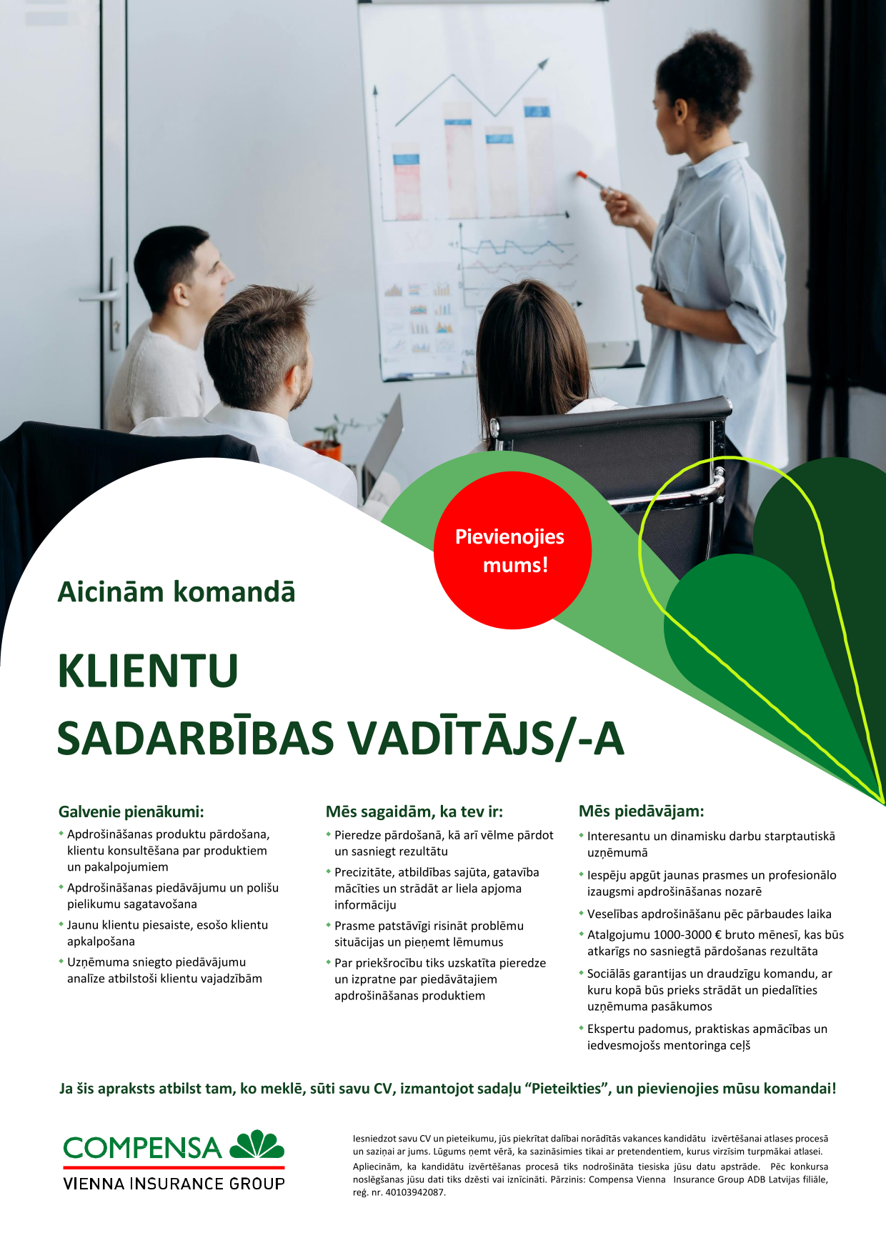 Compensa ir visstraujāk augošā apdrošināšanas sabiedrība, kas piedāvā plašu apdrošināšanas risinājumu klāstu OCTA, KASKO, īpašuma, ceļojuma, kā arī nelaimes gadījumu un civiltiesiskās atbildības apdrošināšanu. Piedāvājot pārdomātus, godīgus, Austrijas tradīcijās balstītus apdrošināšanas risinājumus, Compensa Latvijas tirgū iezīmē jaunus standartus klientu apkalpošanas un atlīdzību izmaksas jomā.