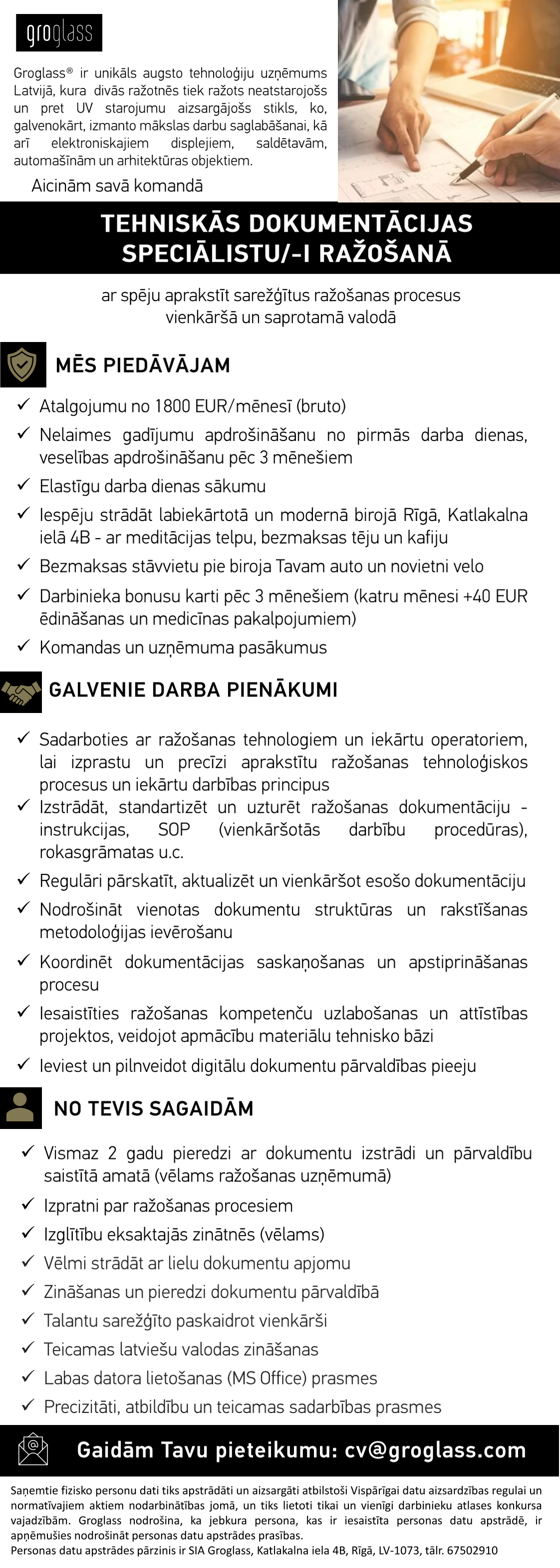 SIA Groglass divās ražotnēs tiek apstrādāts stikls, ko izmanto mākslas darbu ierāmēšanai, elektronisko displeju ekrāniem, arhitektūras risinājumiem un citiem pielietojumiem, kur nepieciešams augstākās kvalitātes stikls. Pašlaik lielākā daļa no SIA Groglass saražotās produkcijas tiek eksportēta uz vairāk kā 35 dažādām pasaules valstīm - Vāciju, Šveici, Nīderlandi, Franciju, Norvēģiju, Lielbritāniju un citām.