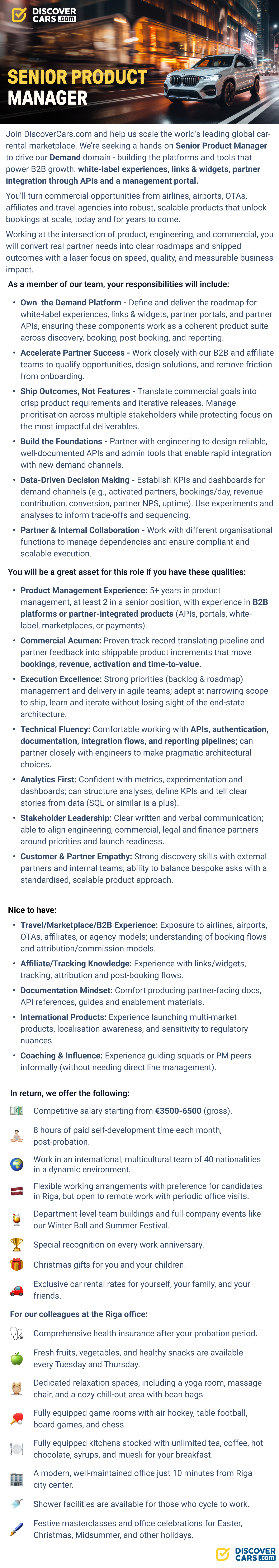 DiscoverCars.com, one of the fastest-growing companies in Europe, according to the Financial Times, seeks to be a world leader in online car rental reservations. Serving more than 10k locations in 145 countries, our company is constantly adding new partners in new locations and pushing for the best prices and service for our customers.We currently serve more than 2.5 million customers monthly via our website, which is available in 20 languages while providing the best possible 24/7 customer support.Our success stems from the fantastic international team we have put together, comprising more than 200 teammates of diverse backgrounds representing 40 nationalities. Each of our employees is a professional in their field and is given the autonomy to do their job as they see best and all the necessary support.
