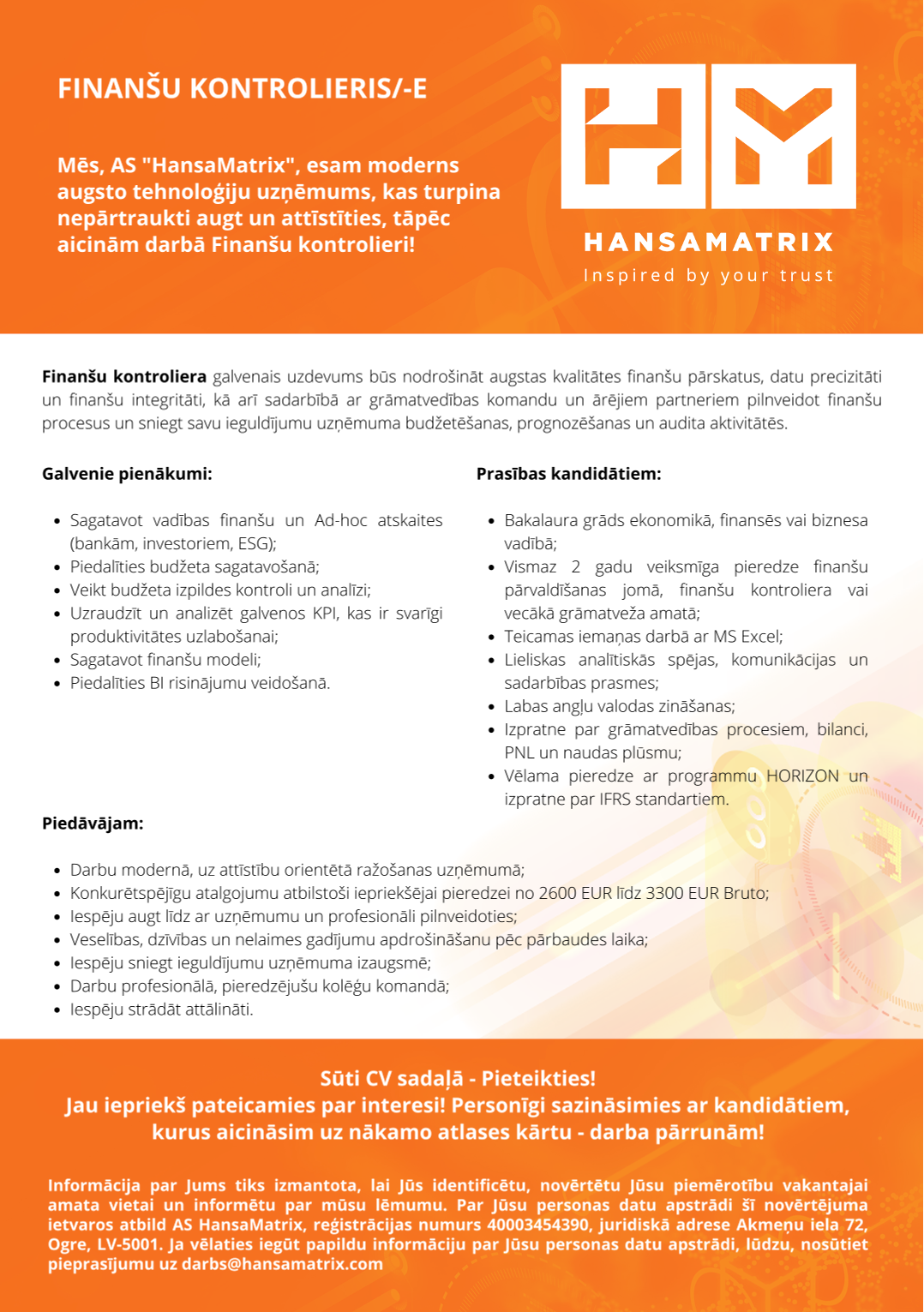 Finanšu analītiķis (ITERUM AS, daļēji attālināti)