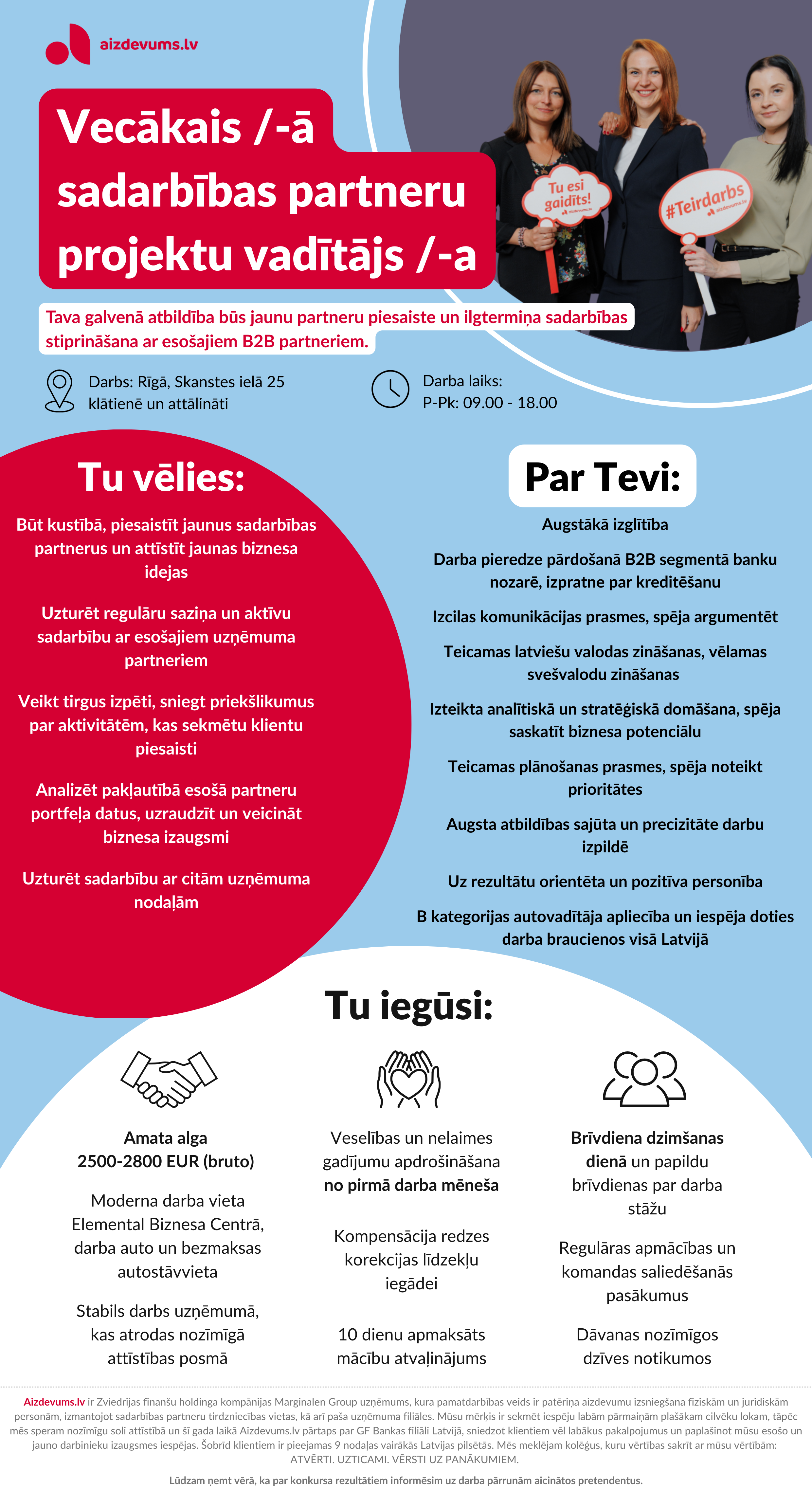 - Konkurētspējīgu atalgojumu bruto 2500-2800 EUR, un papildu piemaksas par sasniegtiem rezultātiem