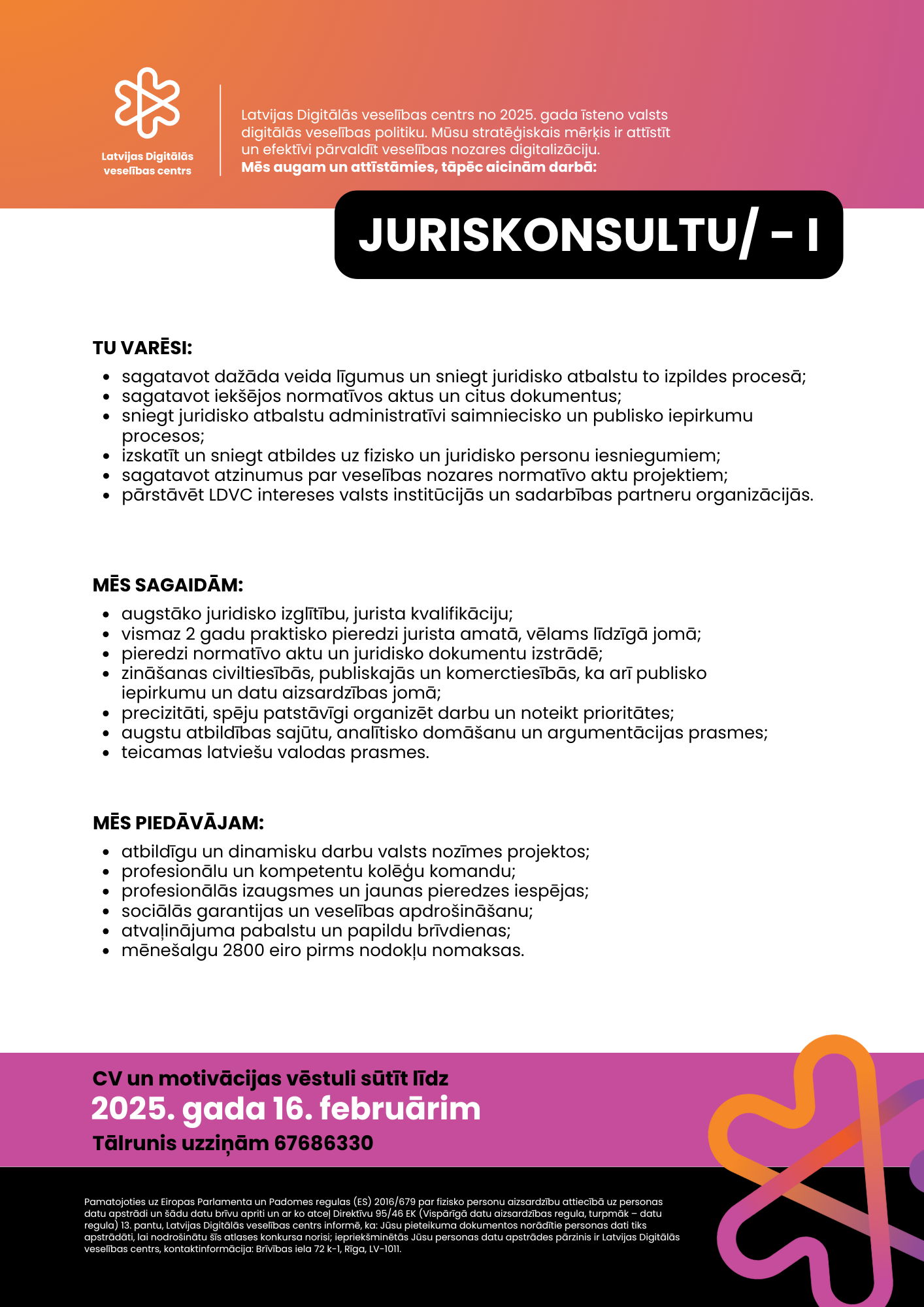 Latvijas Digitālās veselības centrs no 2025. gada īsteno valsts digitālās veselības politiku. Mūsu stratēģiskais mērķis ir attīstīt un efektīvi pārvaldīt veselības nozares digitalizāciju.