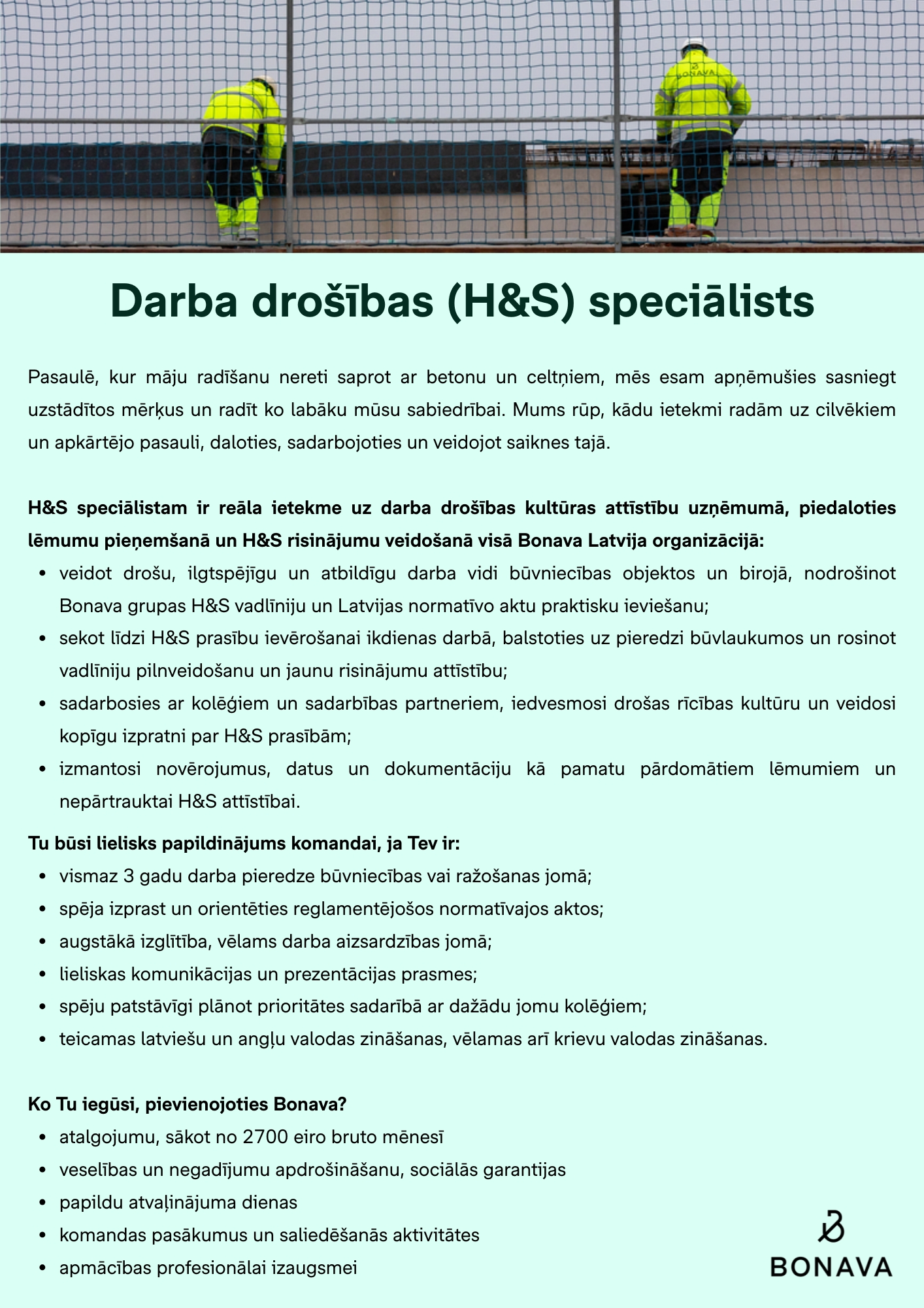 Bonava ir vadošais nekustamo īpašumu attīstītājs Eiropā ar apņemšanos radīt laimīgas mājas un apkaimes daudziem. Pašlaik uzņēmumā strādā aptuveni 900 darbinieku, un tas ir pārstāvēts Vācijā, Zviedrijā, Somijā, Igaunijā, Lietuvā un Latvijā. Līdz šim Bonava ir radījusi vairāk kā 40 tūkstošus mājokļu. Bonava akcijas un zaļā obligācija tiek kotētas NASDAQ biržā Stokholmā. Latvijā pašlaik strādā aptuveni 140 darbinieku.