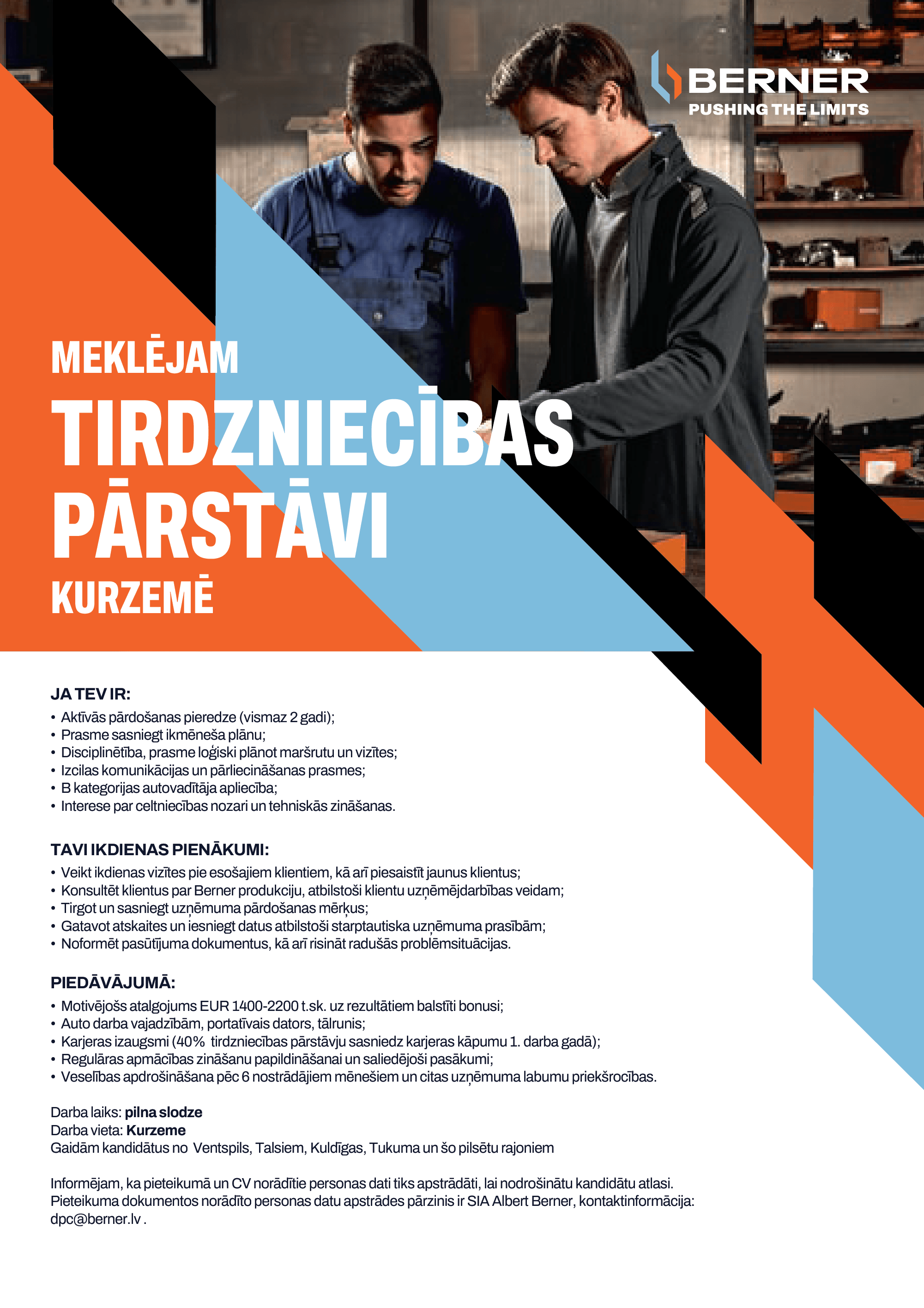 - Konsultēt klientus par Berner produkciju atbilstoši klientu uzņēmējdarbības veidam;