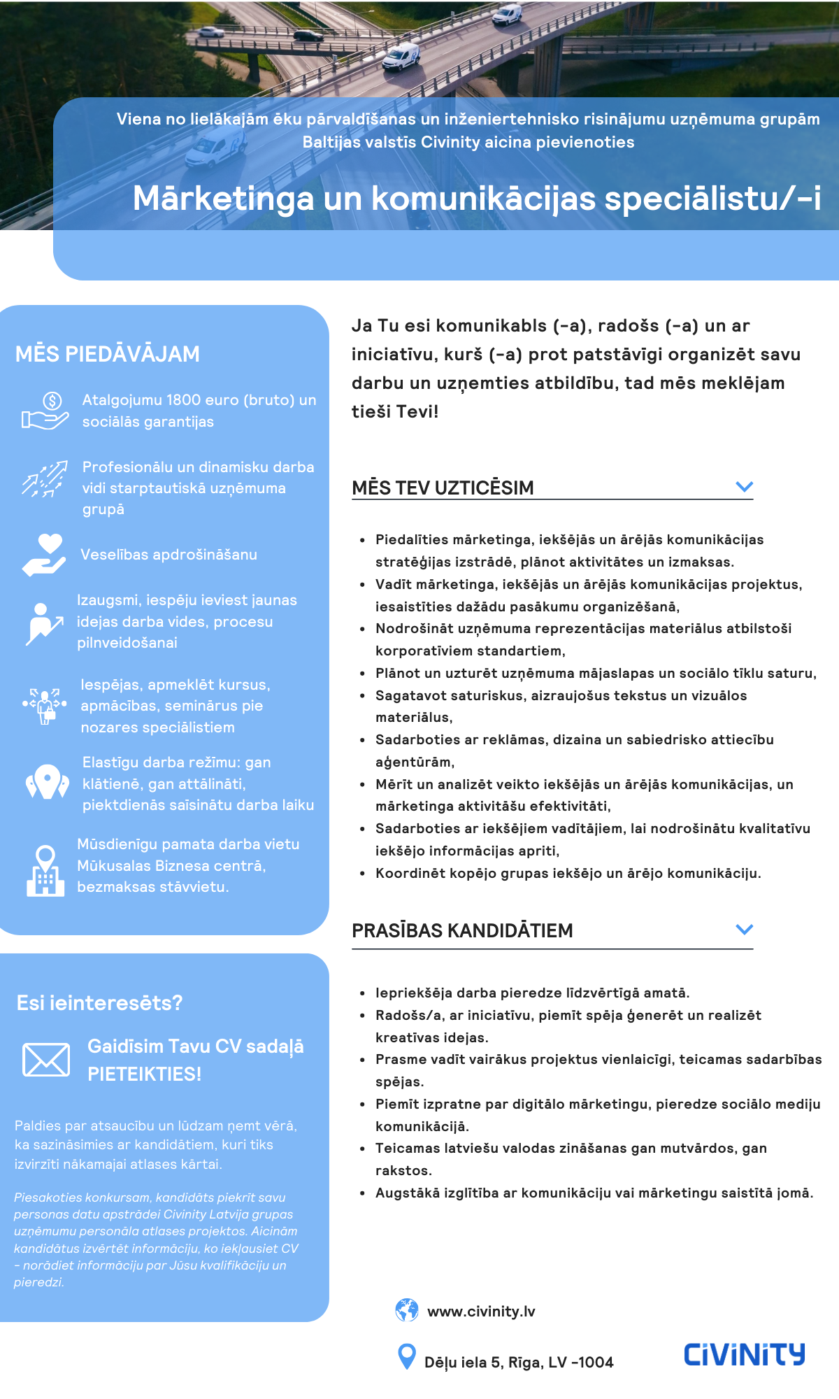 Mārketinga un ārējās komunikācijas speciālists/e (nepilna slodze)