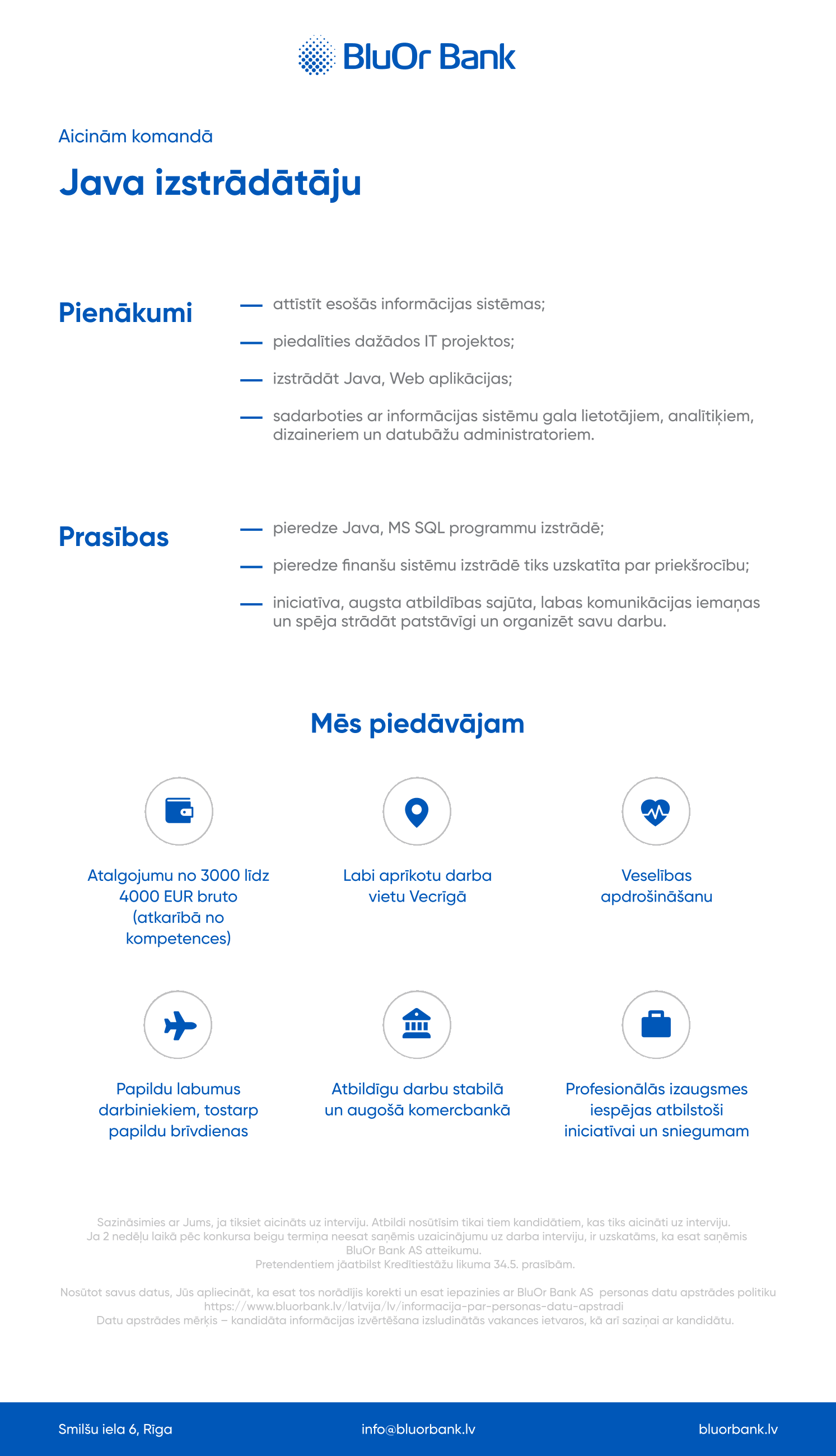 BluOr Банк основан в 2001 году и является современным технологическим банком, предоставляющим финансовые, кредитные и инвестиционные услуги частным клиентам и корпоративным предприятиям в Латвии, странах Балтии и Европы.