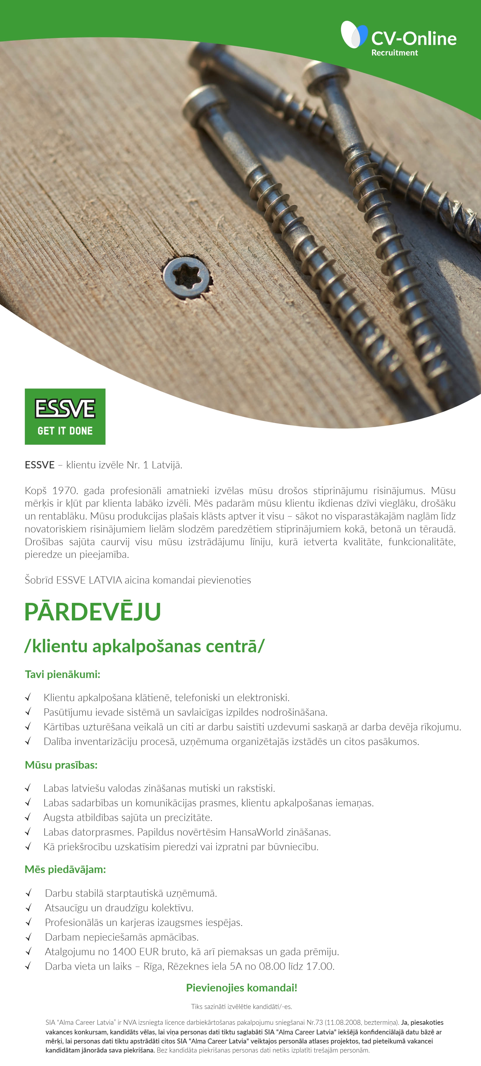 ESSVE klientu izvēle Nr. 1 Latvijā.