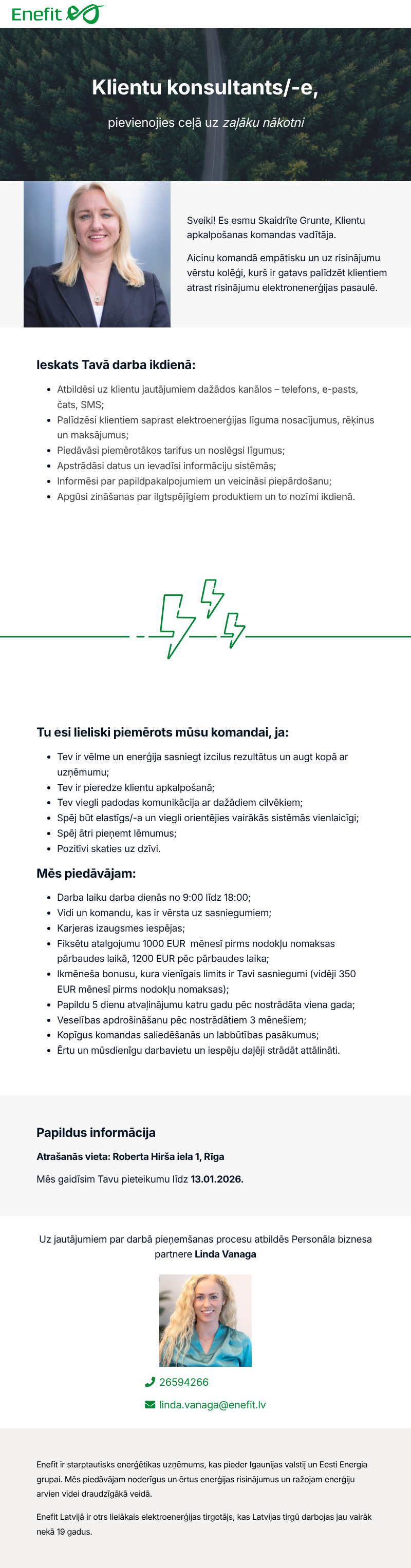 Enefit ir starptautisks enerģētikas uzņēmums, kas pieder Igaunijas valstij un Eesti Energia grupai. Mēs piedāvājam noderīgus un ērtus enerģijas risinājumus un ražojam enerģiju arvien videi draudzīgākā veidā. Mūsu mājas tirgus stiepjas no Somijas līdz Polijai.