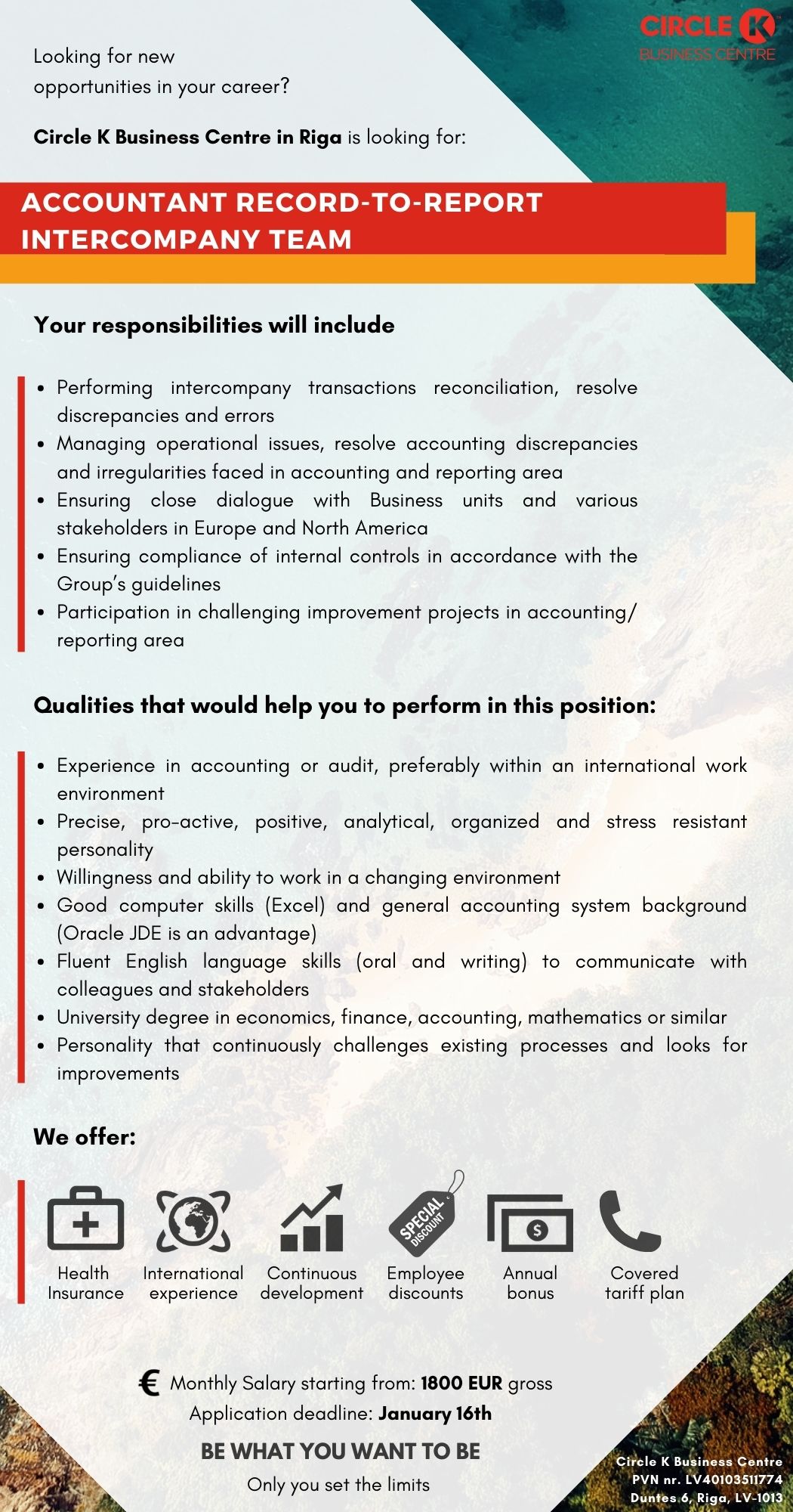 Circle K Business Centre in Riga is one of the biggest support offices in our global Circle K family. Were more than 750 professionals who are providing services in areas of Finance, Logistics, IT, Customer Service & HR. Join our international team!