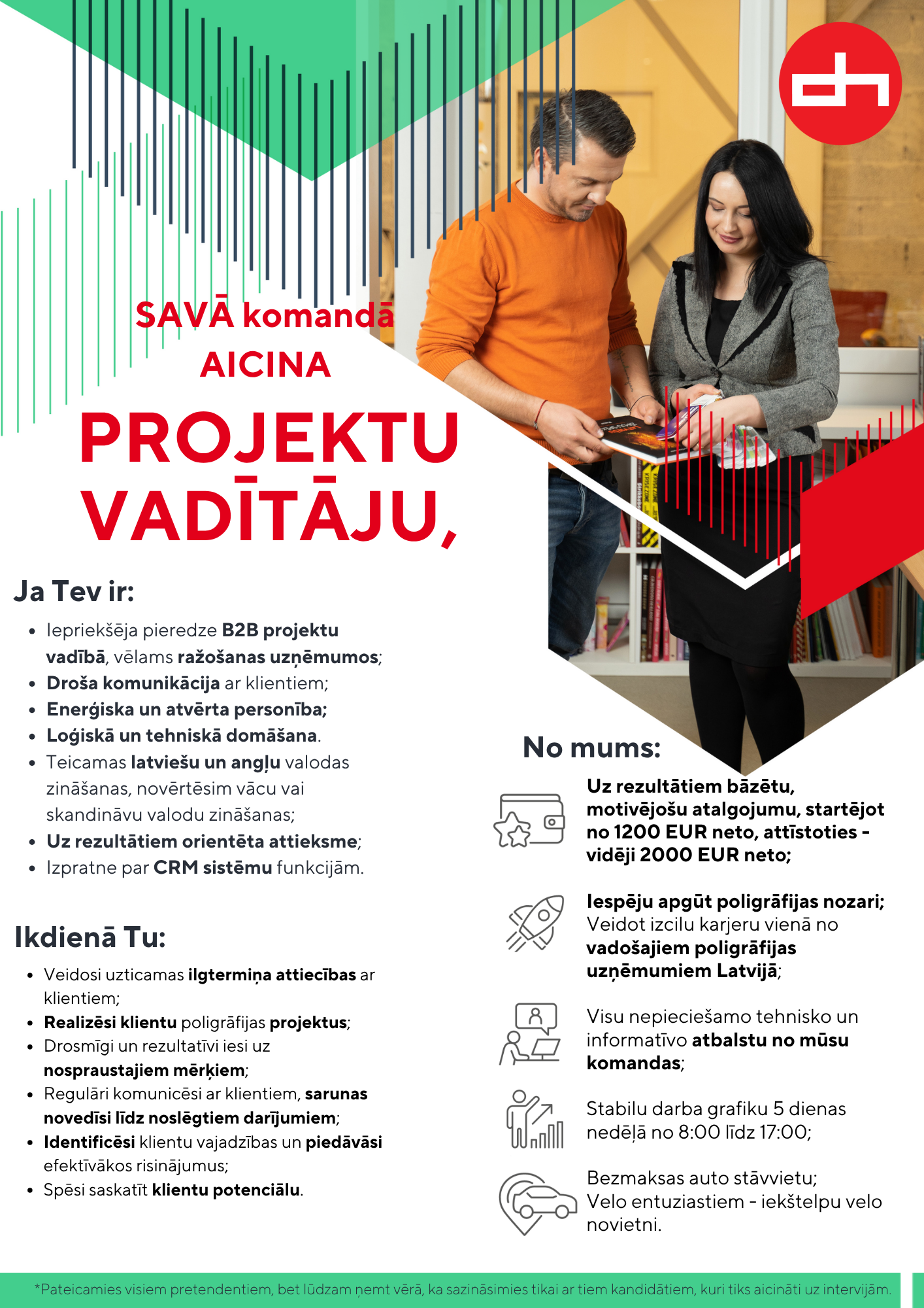 Papildu informācija: Uz rezultātiem bāzētu, motivējošu atalgojumu, startējot no 1200 EUR neto, attīstoties - vidēji 2000 EUR neto;