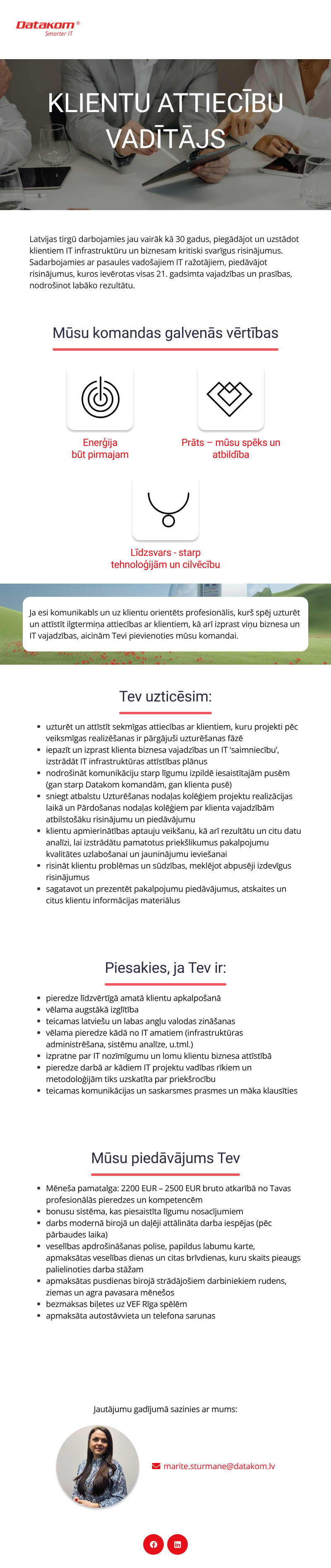 Papildu informācija: Bonusu sistēma, veselības apdrošināšana, pusdienas birojā, brīvdienas
