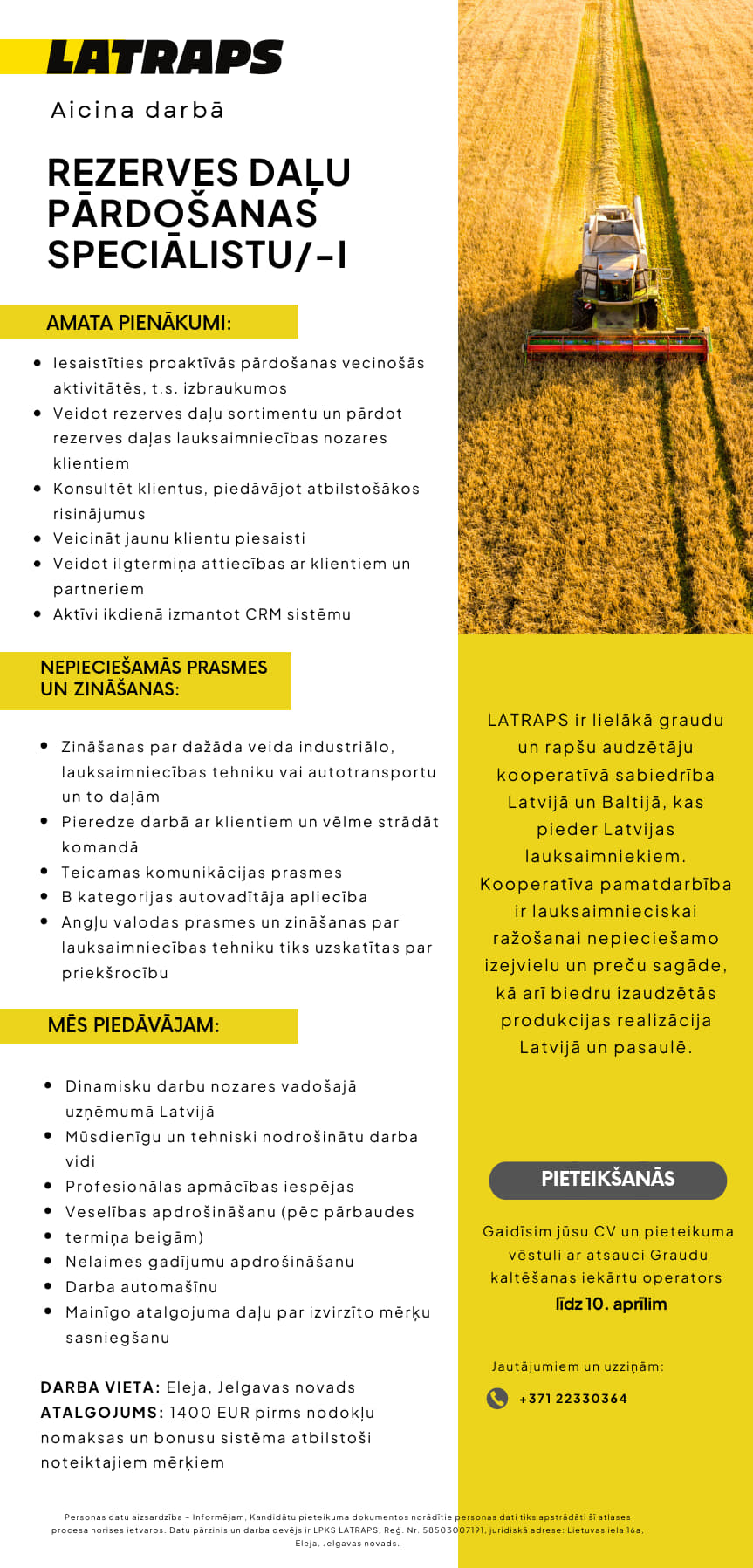 Papildu informācija: 1400 EUR pirms nodokļu nomaksas un bonusu sistēma atbilstoši noteiktajiem mērķiem.