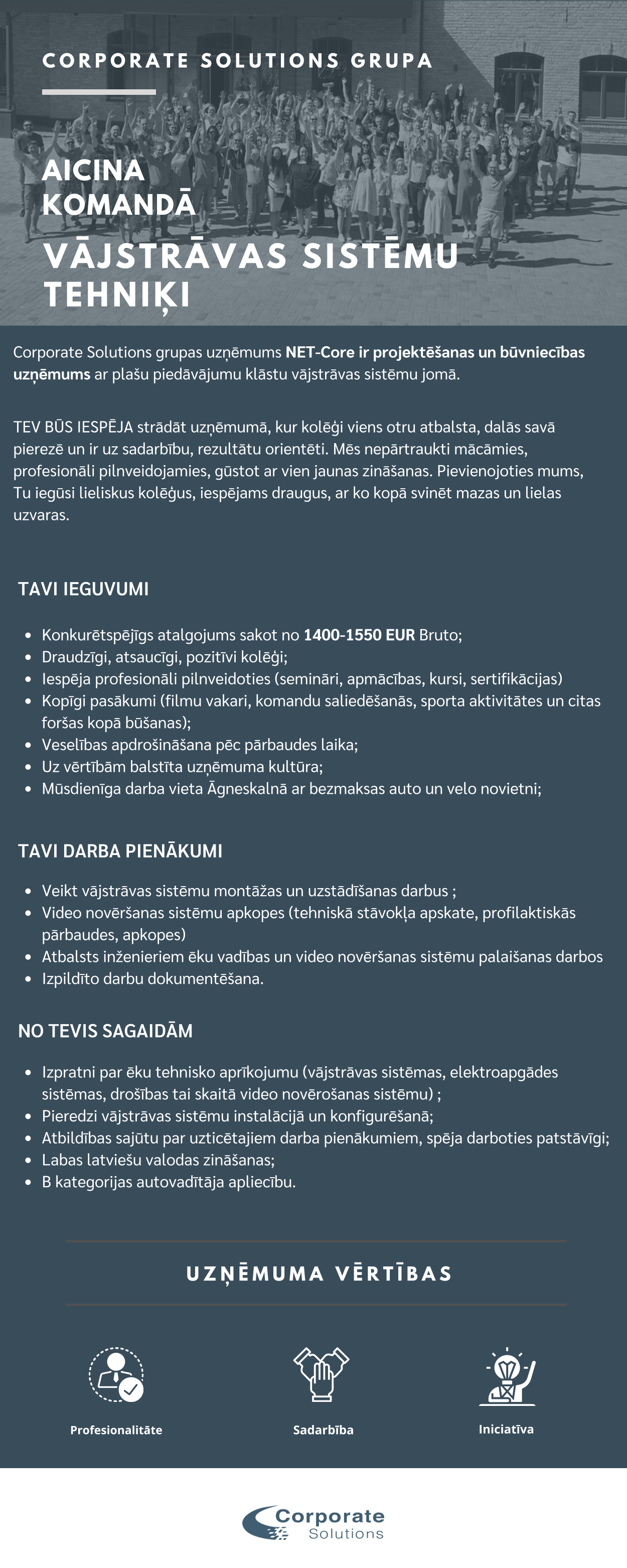 Corporate Solutions grupa apvieno vairākus informācijas tehnoloģiju un biznesa vadības konsultāciju un risinājumu uzņēmums, kas nodrošina pakalpojumus korporatīvajiem klientiem.