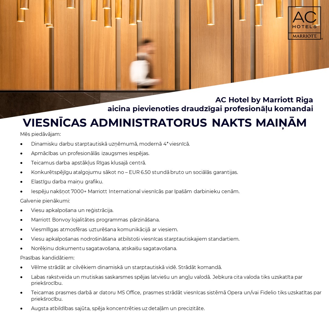 Papildu informācija: Konkurētspējīgu atalgojumu sākot no – EUR 6.50 stundā bruto un sociālās garantijas.