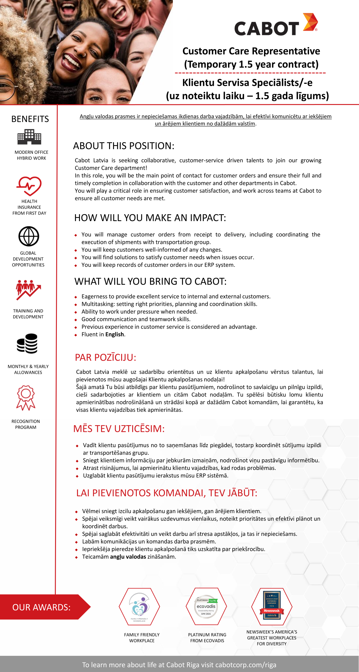 Papildu informācija: Working Hours: 9:00 - 17:30 Temporary contract. Monthly allowance & Yearly bonus. Health insurance from first day of work. Hybrid work schedule (3 days on site and 2 days work from home).