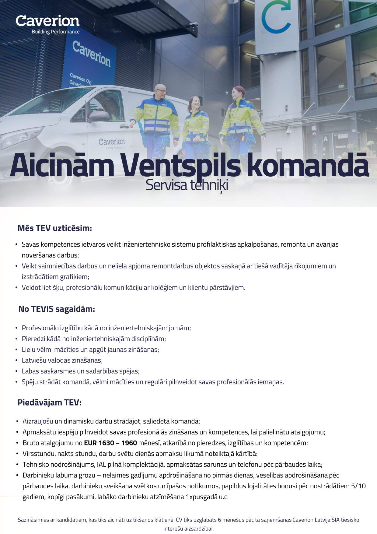 Caverion Latvija SIA ir starptautisks uzņēmums, kas sniedz plašu inženiertehnisko pakalpojuma klāstu. Uzņēmums projektē, būvē un uztur lietotājam draudzīgus un energoefektīvus ēku tehnisko sistēmu risinājumus ēkām, rūpnieciskajiem objektiem un infrastruktūrām. Mūsu pakalpojumu klāsts aptver visu ēkas un rūpnīcu dzīves ciklu.