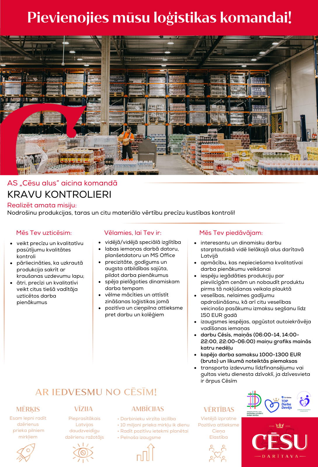 Esam lepni radīt dzērienus prieka pilniem mirkļiem! Darbs mūsu uzņēmumā var kļūt arī par tavu nepārtrauktas izaugsmes dzinēju jebkur Latvijā. Kopš 2021.gada 01.jūnijā esam pievienojuši savai saimei SIA "Piebalgas alus".
